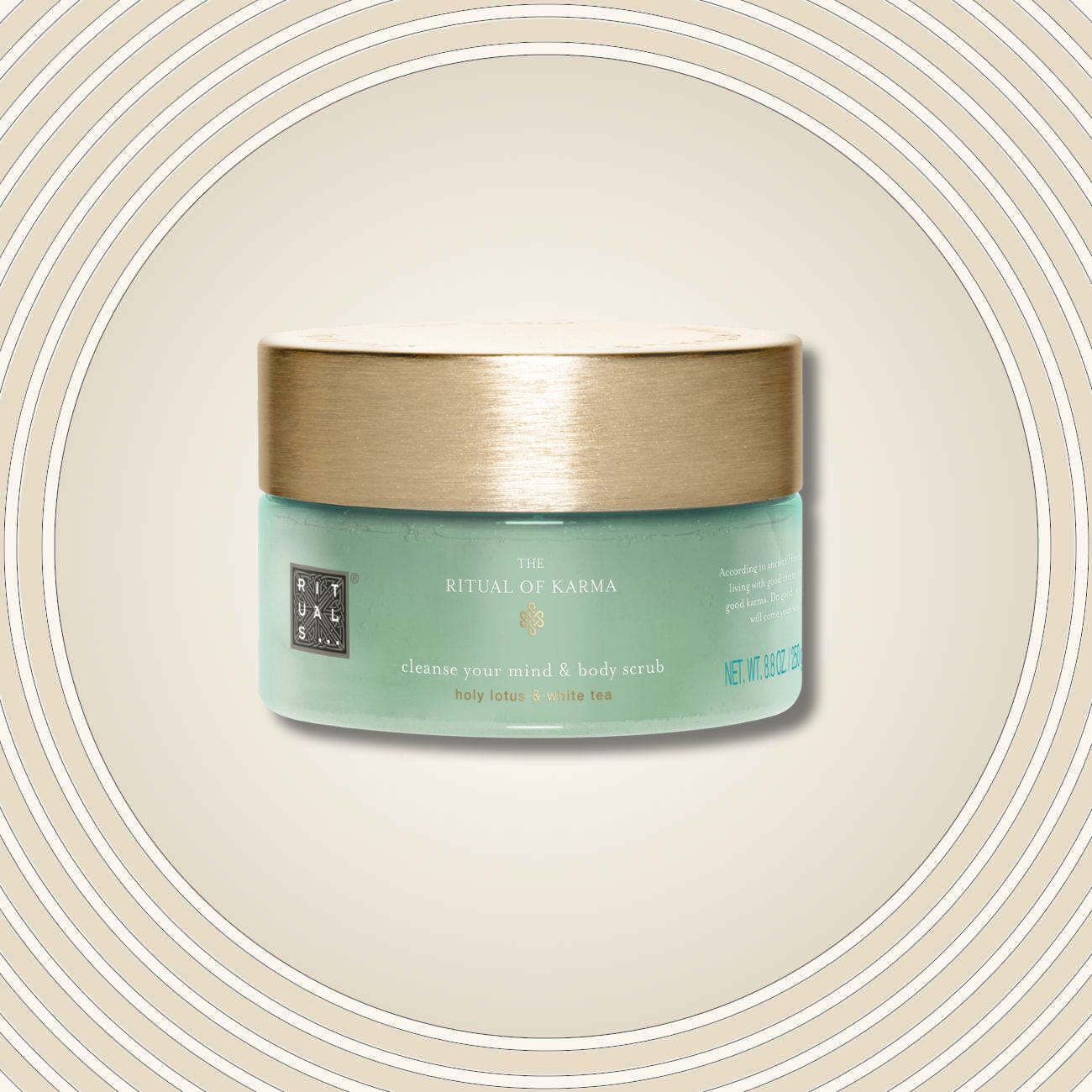 The Ritual of Karma Body Scrub, €16,90 (250 g), Rituals – Mε λευκό τσάι και φυτικά έλαια.