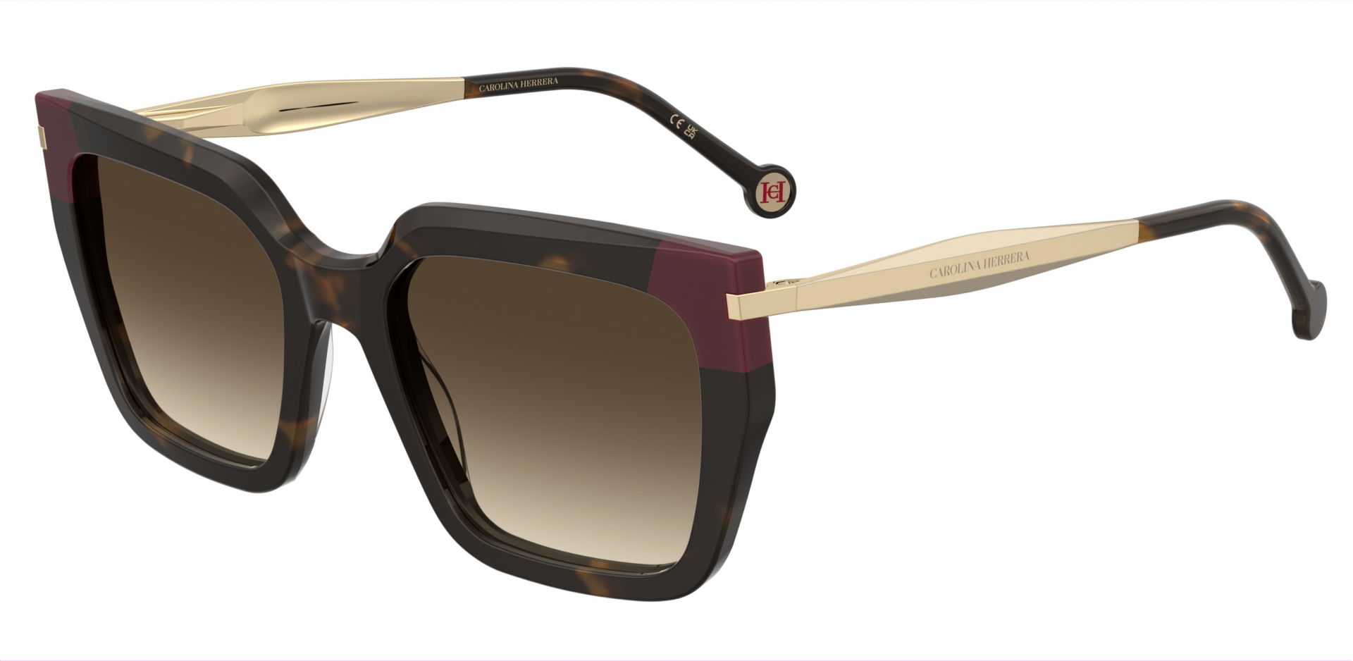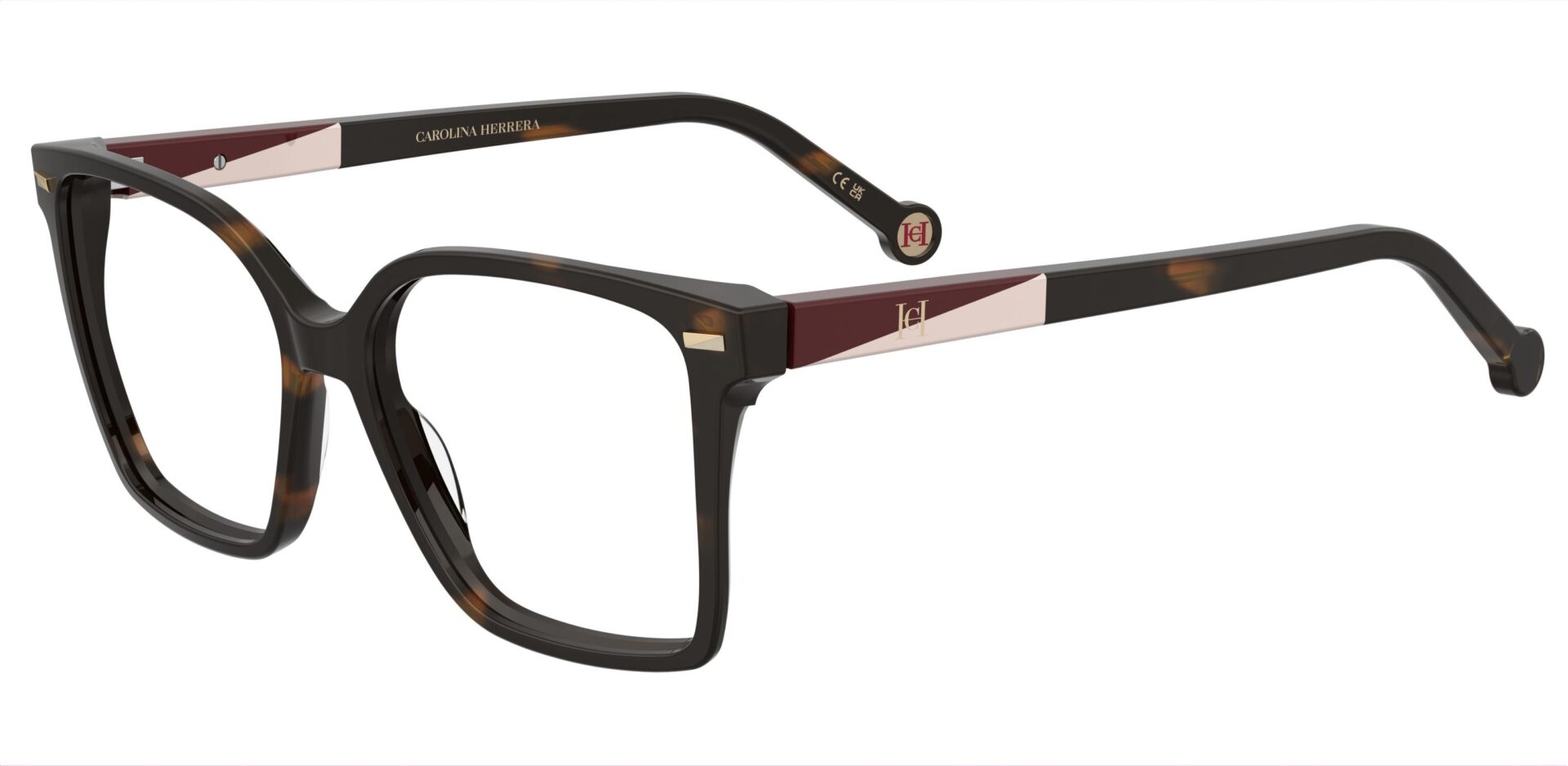 HER 0332/G/S Τα γυαλιά ηλίου και ο οπτικός σκελετός HER 0335 διαθέτουν ευκολοφόρετα και ελαφριά σχήματα εξ ολοκλήρου από ασετάτ, διακοσμημένα στους βραχίονες με νέα δίχρωμη λεπτομέρεια από κολλητό ασετάτ σε «διαγώνιο» σχέδιο, με το λογότυπο-μονόγραμμα CH στο κέντρο. Το μπροστινό μέρος κοσμείται με διακριτικές μεταλλικές λεπτομέρειες που αναπαράγουν το ίδιο διαγώνιο ριγέ μοτίβο. Ο ενσωματωμένος αρμός flex είναι ενσωματωμένος μέσα στους βραχίονες από ασετάτ, προσφέροντας μεγαλύτερη ευκαμψία και κομψό, αναβαθμισμένο σχεδιασμό, ενώ οι στρογγυλεμένες επίπεδες άκρες φέρουν το κόκκινο μονόγραμμα CH. Τα oversize τετράγωνα γυαλιά ηλίου HER 0332/G/S διατίθενται σε ταρταρούγα (Havana) με καφέ ντεγκραντέ φακούς, μαύρο/μαρμάρινη ταρταρούγα με καφέ ντεγκραντέ φακούς και μαύρο με σκούρους γκρι φακούς.