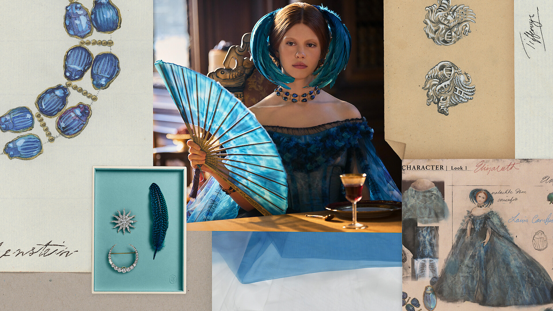 Για τη δημιουργία των κοσμημάτων, η Hawley συνεργάστηκε με τον ιστορικό οίκο Tiffany & Co., αφού πρώτα ερεύνησε τα αρχεία του. Από εκεί προέκυψε το σταυροειδές περιδέραιο της Elizabeth, ένας συνδυασμός από ένα αρχειακό σταυρό και το περίφημο περιδέραιο Scarab της σχεδιάστριας Meta Overbeck. Κατασκευασμένο σε βαθυκόκκινη καρνεόλη, το φυλαχτό αυτό συνοδεύει την ηρωίδα σε όλη την ταινία, συμβολίζοντας τη συνάντηση φύσης και θρησκείας μέσα από το αίμα και τη θυσία.