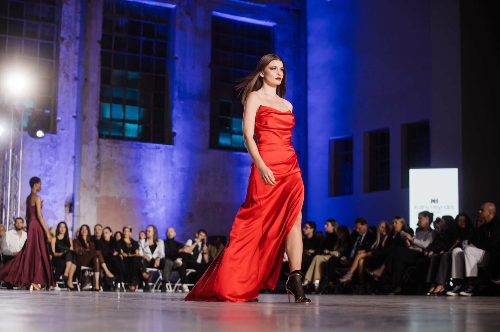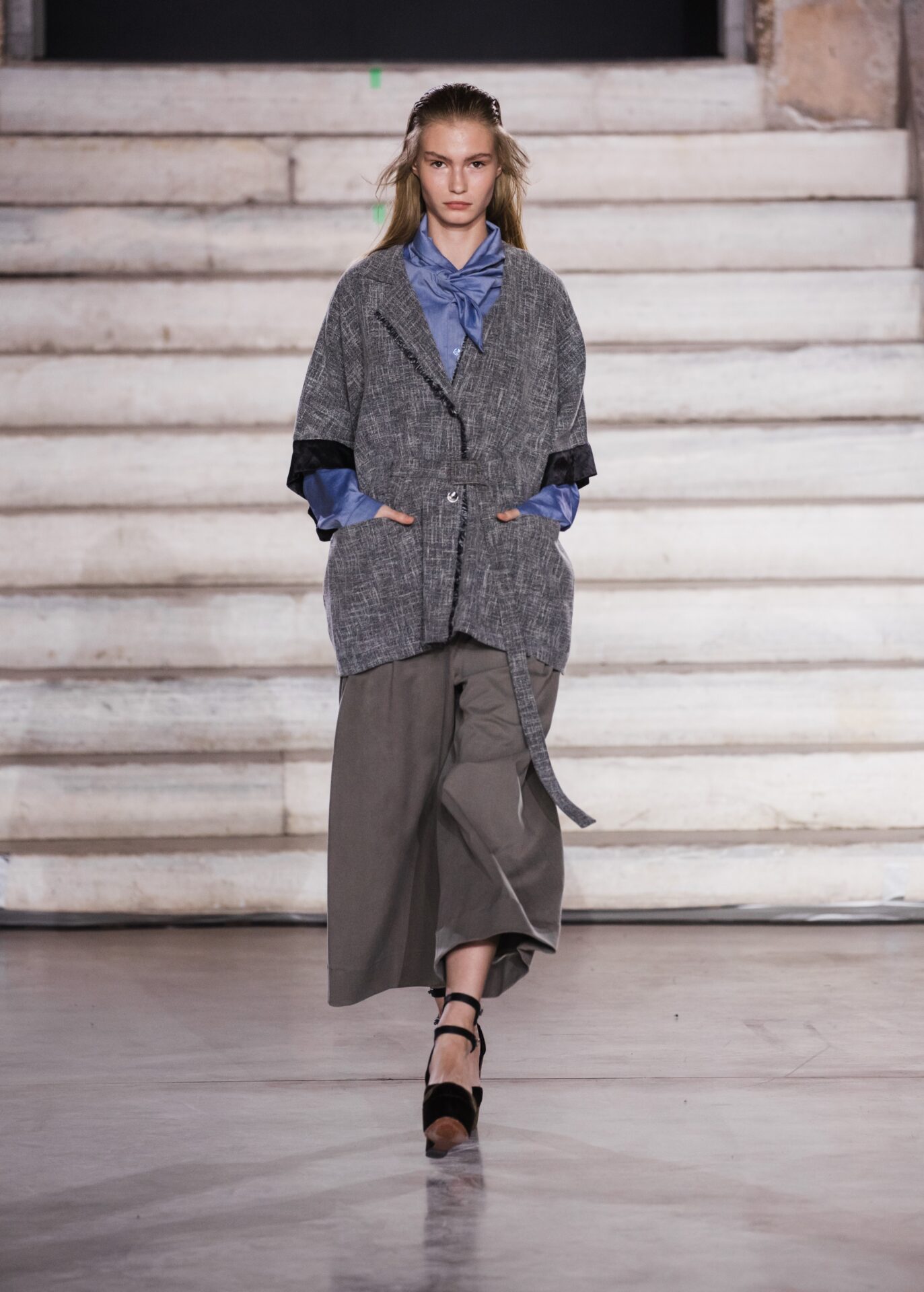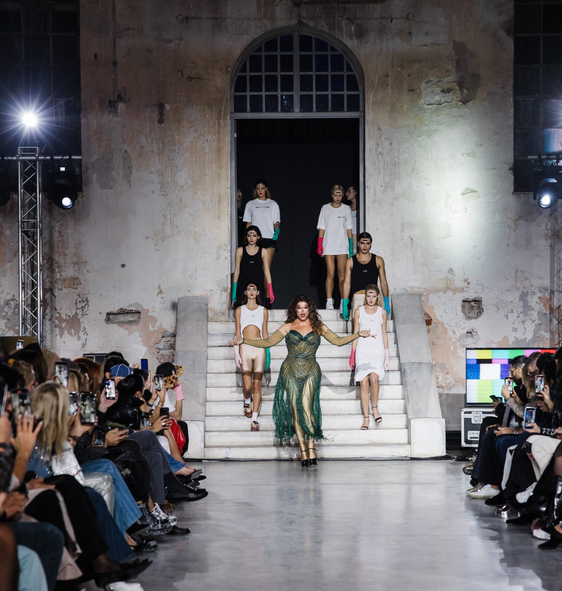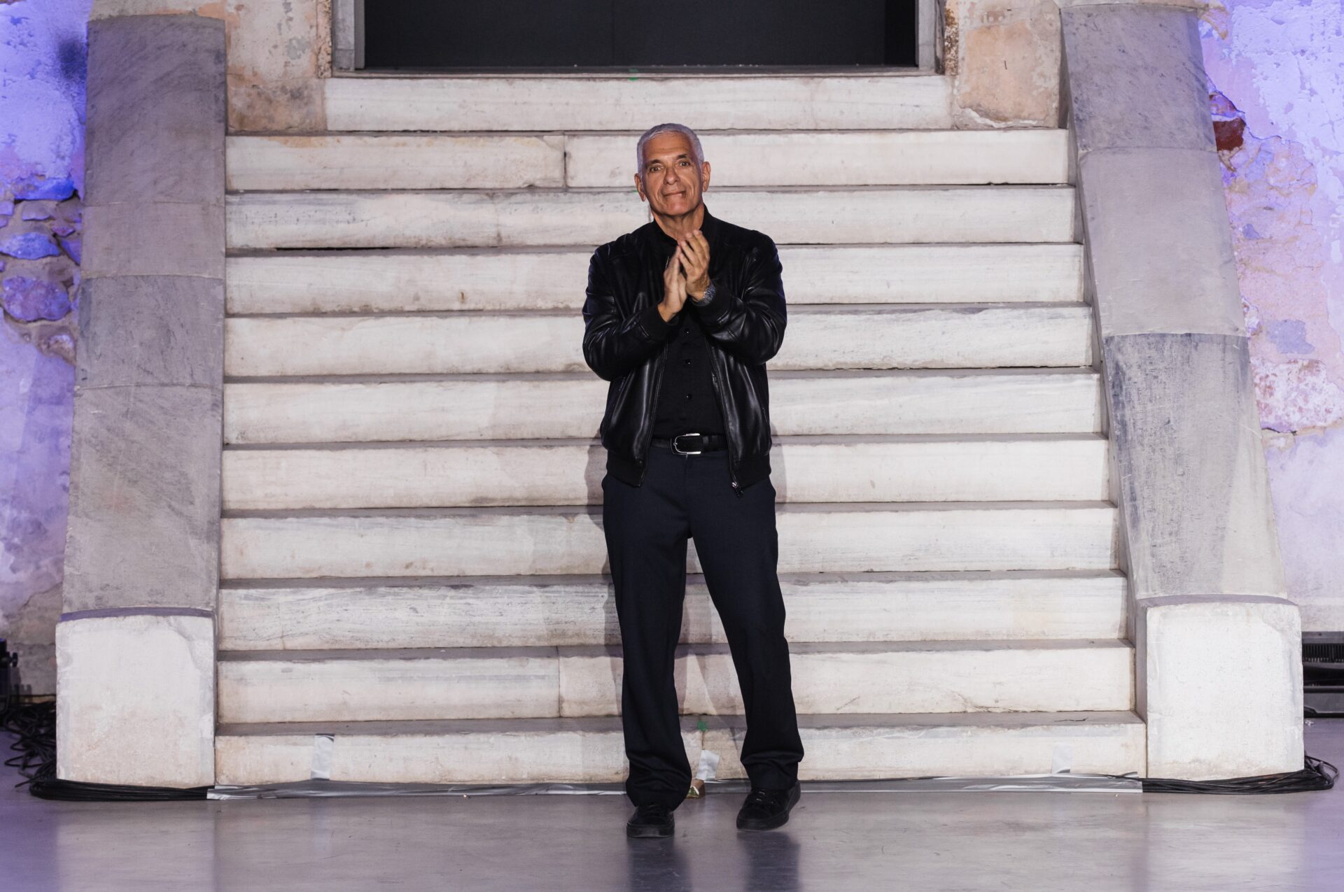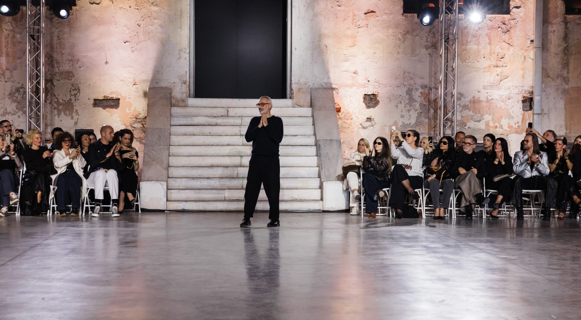 Το ιστορικό κτίριο μεταμορφώθηκε σε σημείο συνάντησης διαφορετικών σχεδιαστικών κόσμων: από την καθαρή, σχεδόν αρχιτεκτονική γραμμή του Γιώργου Ελευθεριάδη, στη θεατρική, larger-than-life διάθεση του Λάκη Γαβαλά, μέχρι τη δερμάτινη, μαύρη πολυτέλεια του Τάσου Μητρόπουλου και την αναγνωρίσιμη αισθητική υπογραφή του οίκου Kathy Heyndels.