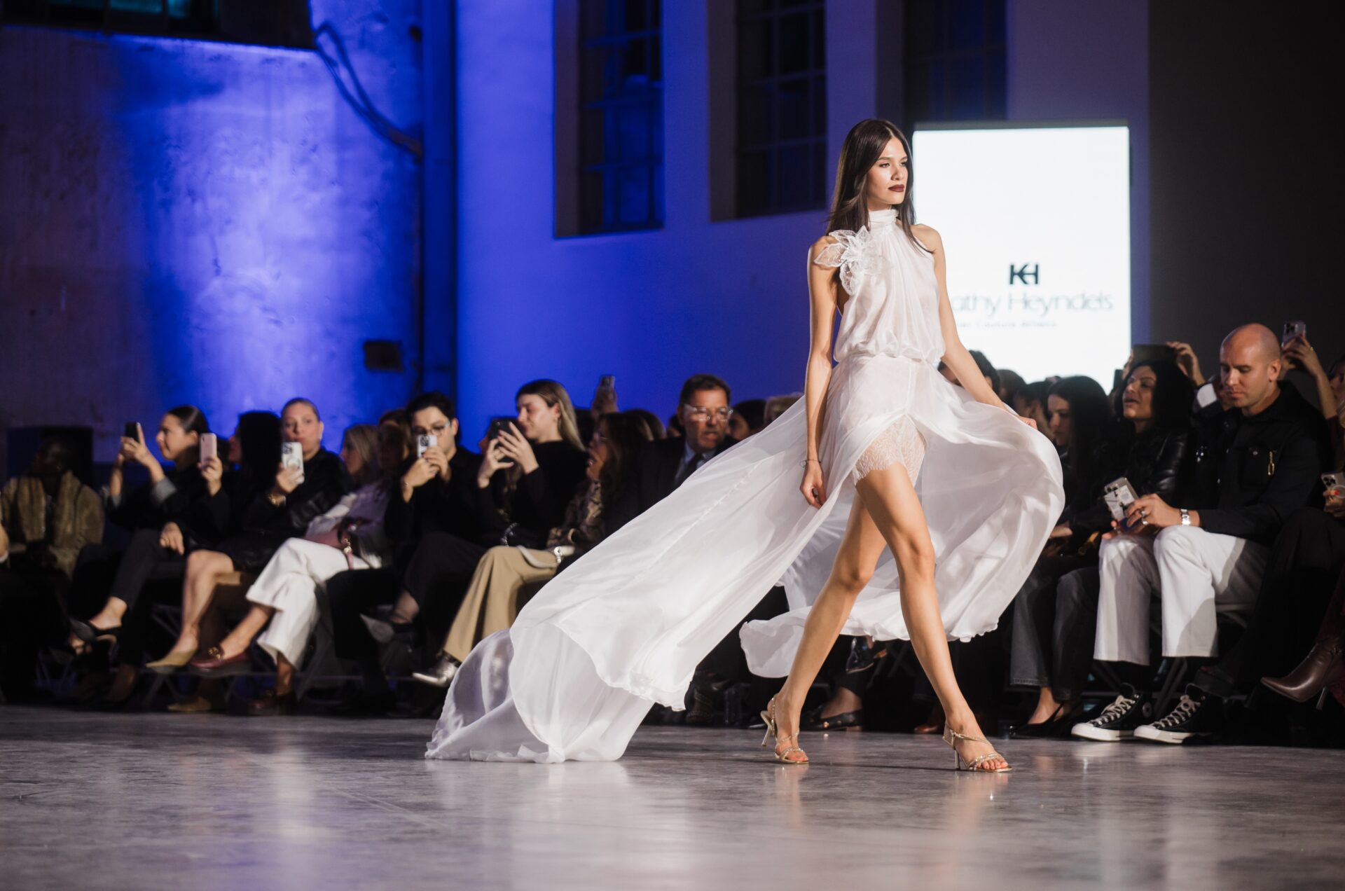 Την αυλαία έκλεισε η Kathy Heyndels με τη συλλογή Dark Elegance. Ένας ύμνος στη σύγχρονη θηλυκότητα, οι δημιουργίες ισορροπούν μεταξύ δομής και ροής, αποπνέοντας κομψότητα και πολυτέλεια. Η παλέτα χρωμάτων σε μαύρο, μπορντό, καφέ και γκρι, τα tailor-made κομμάτια και τα νυφικά από μουσελίνες και δαντέλα δημιούργησαν έναν κόσμο διακριτικής, αλλά εντυπωσιακής θηλυκότητας, που υπογραμμίζει τη δύναμη μέσα από την απλότητα και τη λεπτομέρεια.