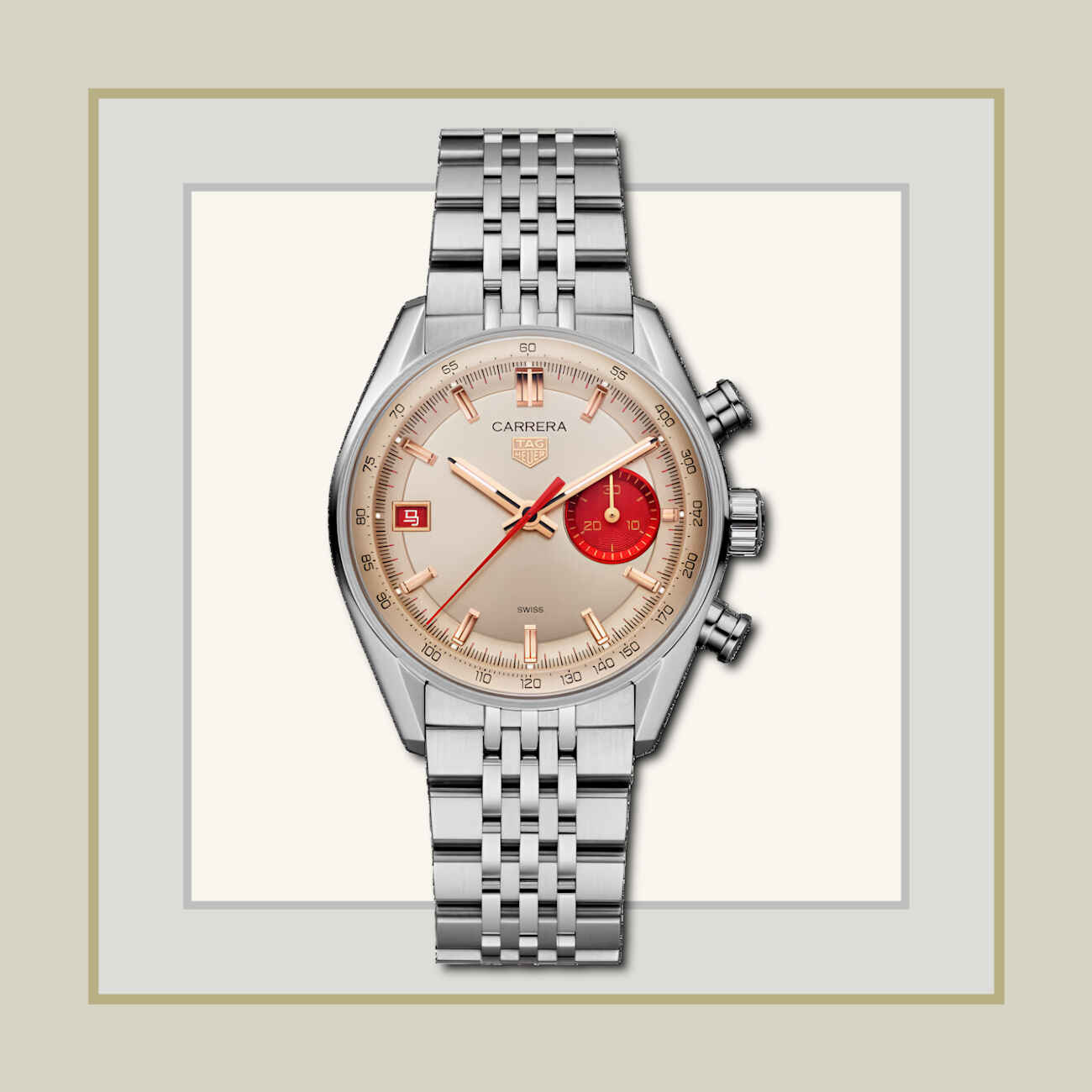Η Tag Heuer γιορτάζει το Έτος του Πύρινου Αλόγου με ένα Carrera Chronograph με καντράν σε αποχρώσεις σαμπανιζέ χρυσού και βαθύ κόκκινο. Το παράθυρο ημερομηνίας στις 9 η ώρα αντικαθιστά τον αριθμό «7» με τον κινεζικό χαρακτήρα «马», σε αναφορά στη θέση του Αλόγου ως έβδομου ζώου στον κινεζικό ζωδιακό κύκλο. Περιορισμένο σε 250 τεμάχια, έρχεται σε ατσάλινη κάσα 39 mm με γυάλινο θολωτό sapphire τύπου glassbox. Το πίσω μέρος αποκαλύπτει τον αυτόματο Calibre TH20-07 κάτω από κρύσταλλο ζαφειριού, διακοσμημένο με ανάγλυφη εικόνα καλπάζοντος αλόγου.