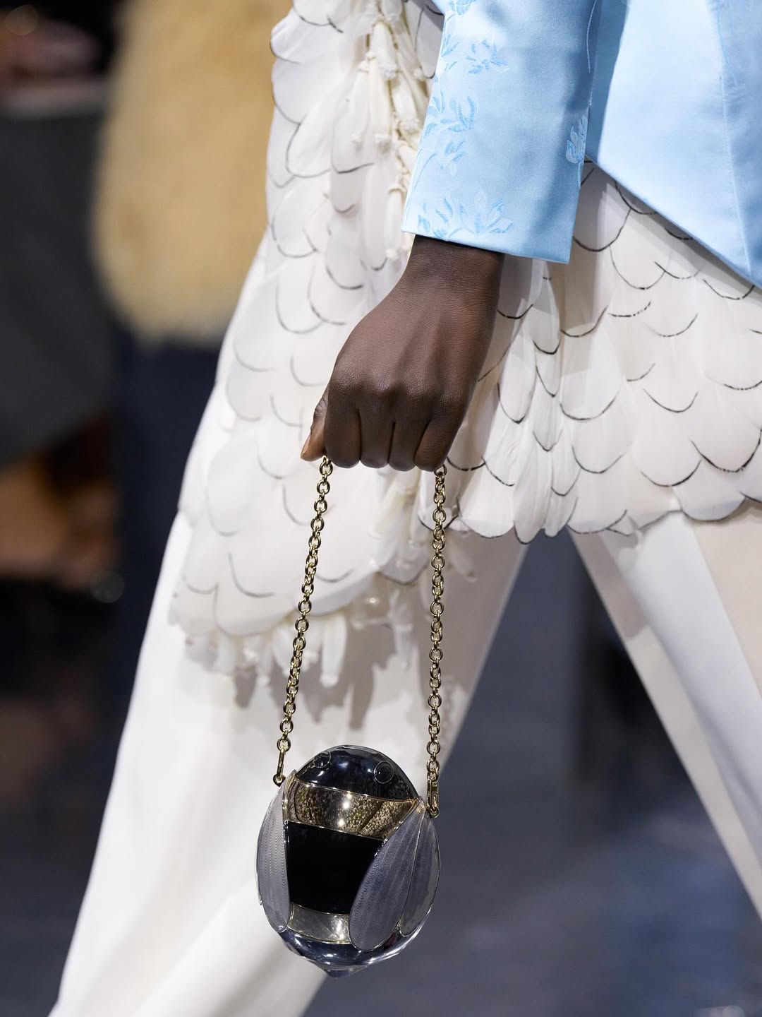 Η πρώτη couture συλλογή του Jonathan Anderson για τον Dior έκλεψε την παράσταση και στις λεπτομέρειες με τσάντες που έμοιαζαν με mini αριστουργήματα.