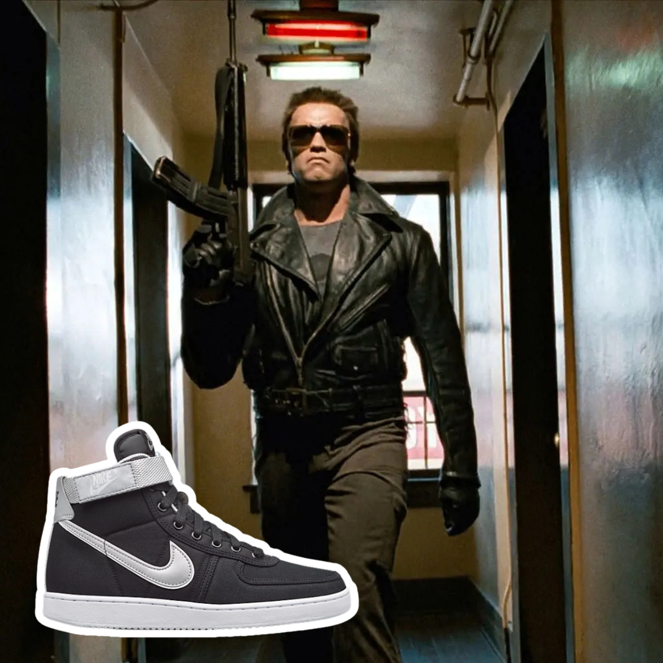 Η πρώτη ενέργεια του Kyle Reese όταν ταξιδεύει πίσω στον χρόνο για να προστατεύσει τη Sarah Connor από τον Terminator είναι… να αγοράσει sneakers. Διαλέγει ένα ζευγάρι Nike Vandal σε μαύρο/ασημί/άσπρο, που έκανε πρεμιέρα το 1984 μαζί με τα Air Force 1 και Dunk. Το συγκεκριμένο μοντέλο είναι γνωστό για τον ιδιαίτερο ιμάντα στον αστράγαλο και το νάιλον στο πάνω μέρος. Το Vandal θεωρείται το μικρό “αδελφάκι” των πιο διάσημων σιλουετών όπως το Air Force 1, αλλά έχει τους πιστούς του θαυμαστές. Η κορυφαία σκηνή με τα sneakers είναι όταν ο Kyle σφίγγει τους ιμάντες κάτω από την κουρτίνα ενώ η αστυνομία φωτίζει το πολυκατάστημα.