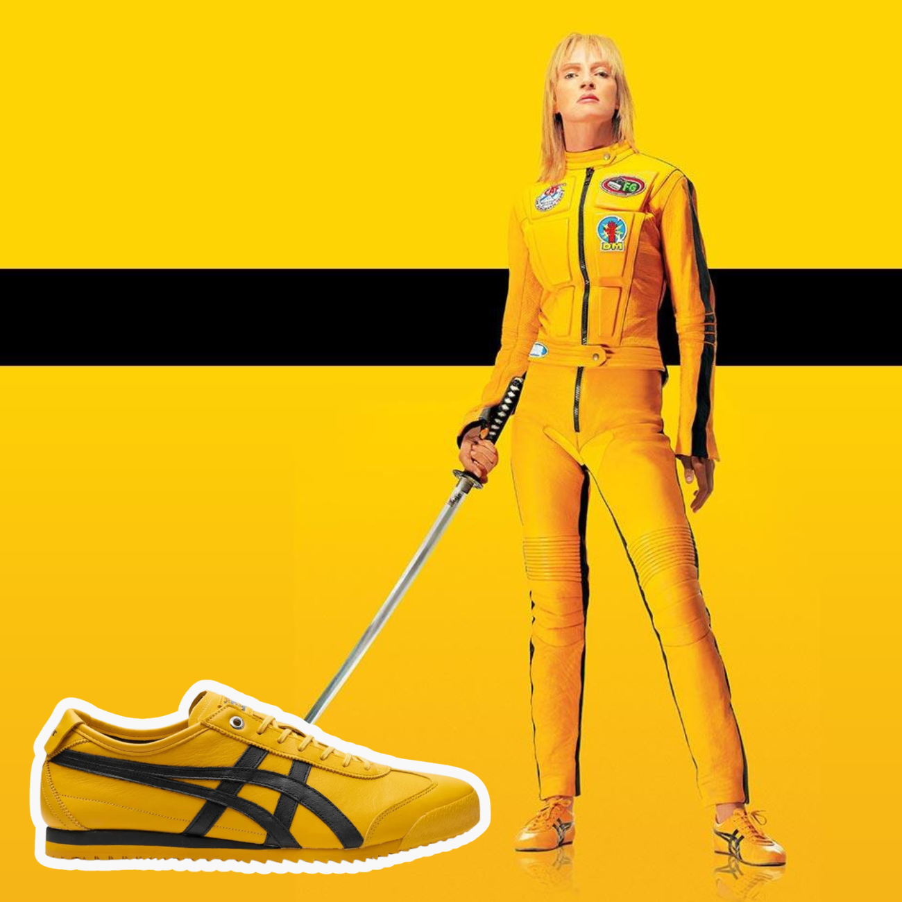 Ο μαύρος-κίτρινος χρωματικός συνδυασμός σε sneakers είναι γνωστός στον κόσμο των παπουτσιών ως “Kill Bill”, λόγω της ταινίας του Quentin Tarantino το 2003. Όμως, η φήμη αυτού του χρωματικού συνδυασμού ξεκινά πολύ πιο πριν. Στην ταινία Kill Bill, η ηθοποιός Uma Thurman φοράει μια κίτρινη φόρμα με μαύρες λεπτομέρειες, που έγινε εμβληματική. Αυτή η στολή είναι φόρος τιμής στον μεγάλο Bruce Lee, ο οποίος το 1978 φορούσε ακριβώς την ίδια κίτρινη-μαύρη φόρμα στην ταινία Game of Death. Δυστυχώς, το Game of Death ήταν η τελευταία ταινία που γύρισε ο Bruce Lee πριν πεθάνει. Η επιλογή της Thurman να φορέσει παρόμοια στολή ήταν ένας τρόπος να τιμήσει τον θρυλικό ηθοποιό και τις martial arts ταινίες του, ενώ τα sneakers με αυτόν το συνδυασμό απέκτησαν έτσι μια ιστορική και πολιτιστική σημασία.