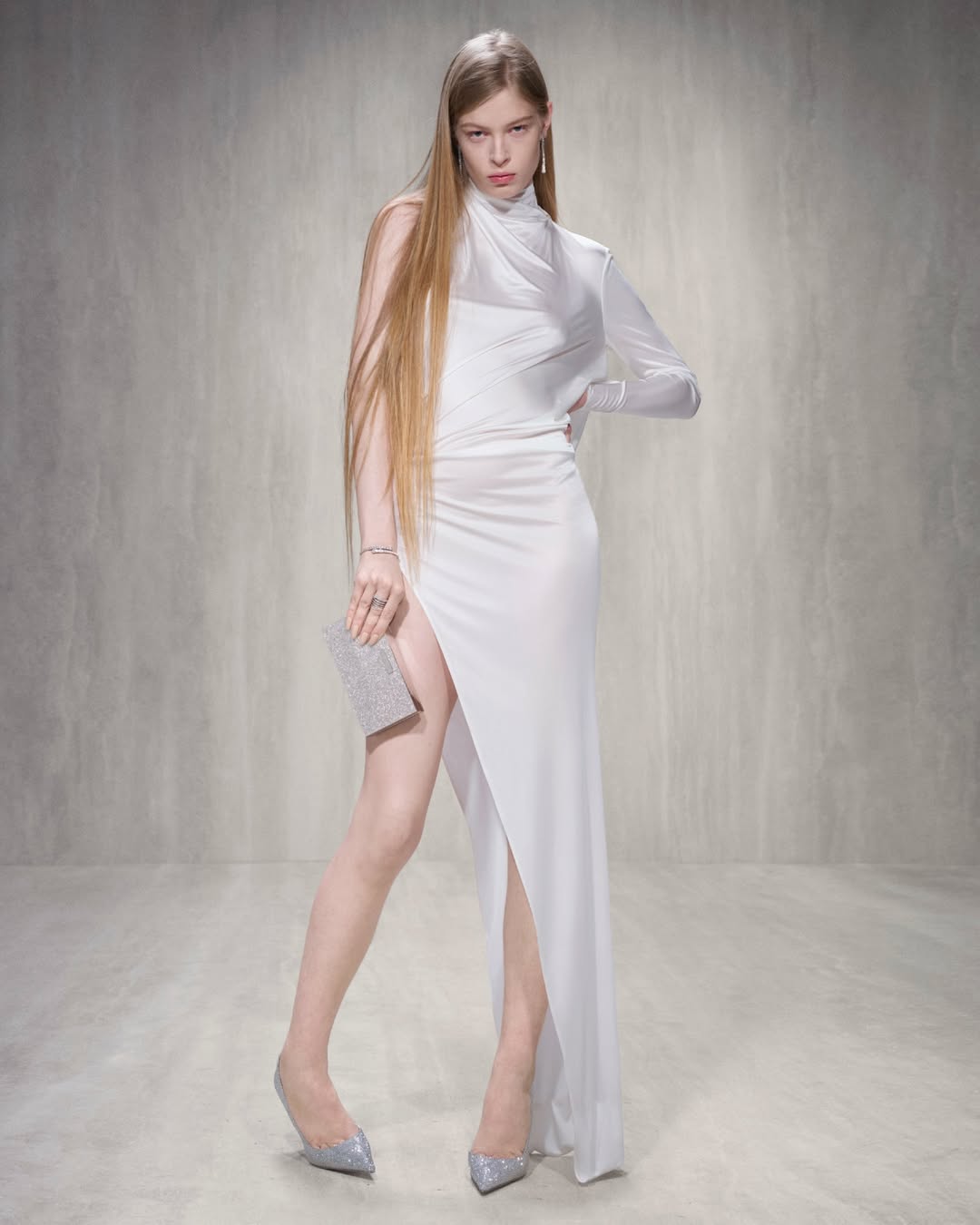 Στην πασαρέλα περπάτησαν μερικά από τα μεγαλύτερα μοντέλα της εποχής, από Amelia Gray, Emily Ratajkowski (EmRata), Alex Consani, Vittoria Ceretti, Karlie Kloss, Jacqui Hooper, Elsa Hosk έως Mariacarla Boscono. Ωστόσο, το πιο πολυσυζητημένο και viral στιγμιότυπο της βραδιάς ήρθε με την εμφάνιση της Kate Moss στο τέλος της επίδειξης. Η βρετανίδα supermodel, είδωλο της μόδας από τη δεκαετία του ’90 και πέρα, επέστρεψε στο runway Gucci, για πρώτη φορά μετά από σχεδόν τρεις δεκαετίες, σε μια στιγμή που συγκέντρωσε τα φλας. Φόρεσε μια μακριά, λαμπερή τουαλέτα με ενσωματωμένο G‑string, κάνοντας σαφή αναφορά στα εμβληματικά sexy looks της εποχής Tom Ford στη δεκαετία του ’90, ενώ η λάμψη του outfit προσέδωσε μια σύγχρονη, προκλητική αλλά και elegant νότα στο φινάλε της παρουσίασης.