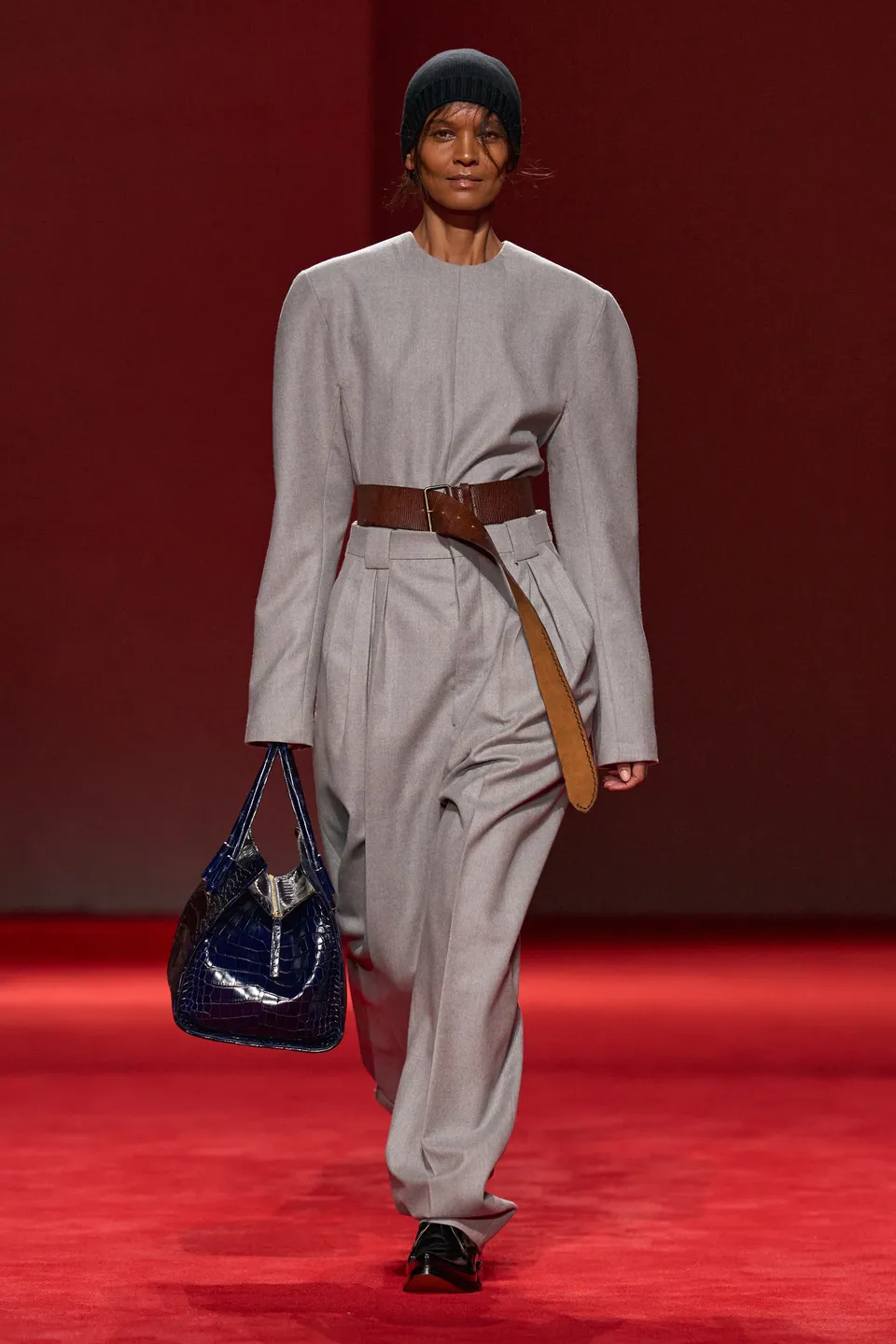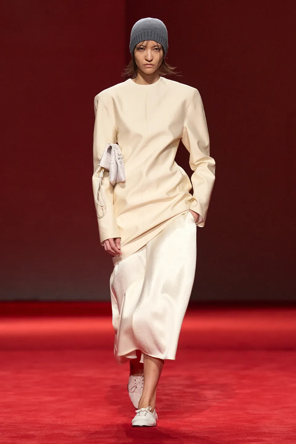 Τα αξεσουάρ διατήρησαν πρακτικό χαρακτήρα (flat παπούτσια και πλεκτά beanies) με λίγες πιο παιχνιδιάρικες παρεμβολές, επιβεβαιώνοντας ότι η πολυτέλεια εδώ εκφράζεται μέσα από δομή, λειτουργικότητα και σιωπηλή αυτοπεποίθηση. Είναι μια συλλογή που δεν βασίζεται σε εντυπωσιασμούς, αλλά σε δυνατές σιλουέτες και σε ρούχα σχεδιασμένα να σταθούν στον πραγματικό, αστικό χειμώνα.