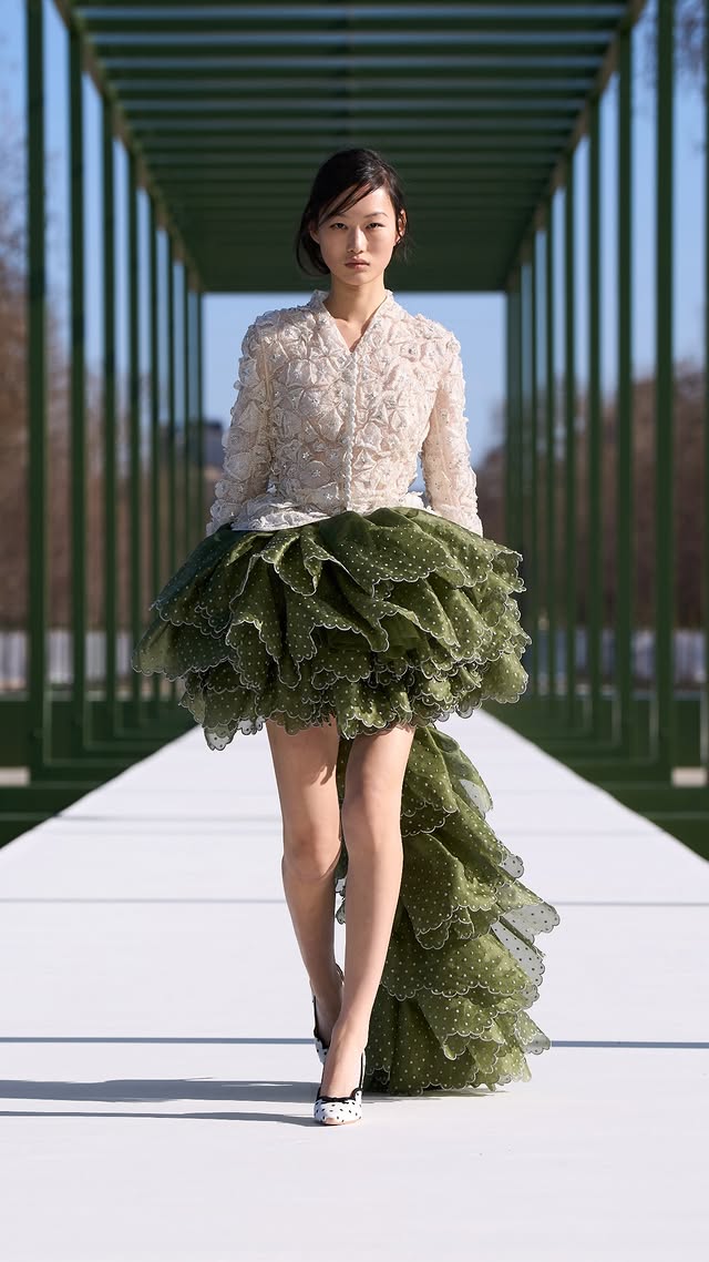 Η συλλογή FW26 χαρακτηρίζεται από μια ισορροπία ανάμεσα στην κλασική κομψότητα του οίκου και μια πιο χαλαρή, σύγχρονη ενσάρκωση του Παρισινού στιλ.Τα ρούχα ενισχύουν την αίσθηση ενός “garden party”, ενώ η παριζιάνικη κομψότητα συνδυάζεται με παιχνιδιάρικες αναφορές. Τα βολάν, οι ρομαντικές φούστες tutu και τα floral μοτίβα κυριαρχούν, θυμίζοντας τόσο την παραδοσιακή κληρονομιά του Dior όσο και τη σύγχρονη ανάγνωση των κήπων του Παρισιού.