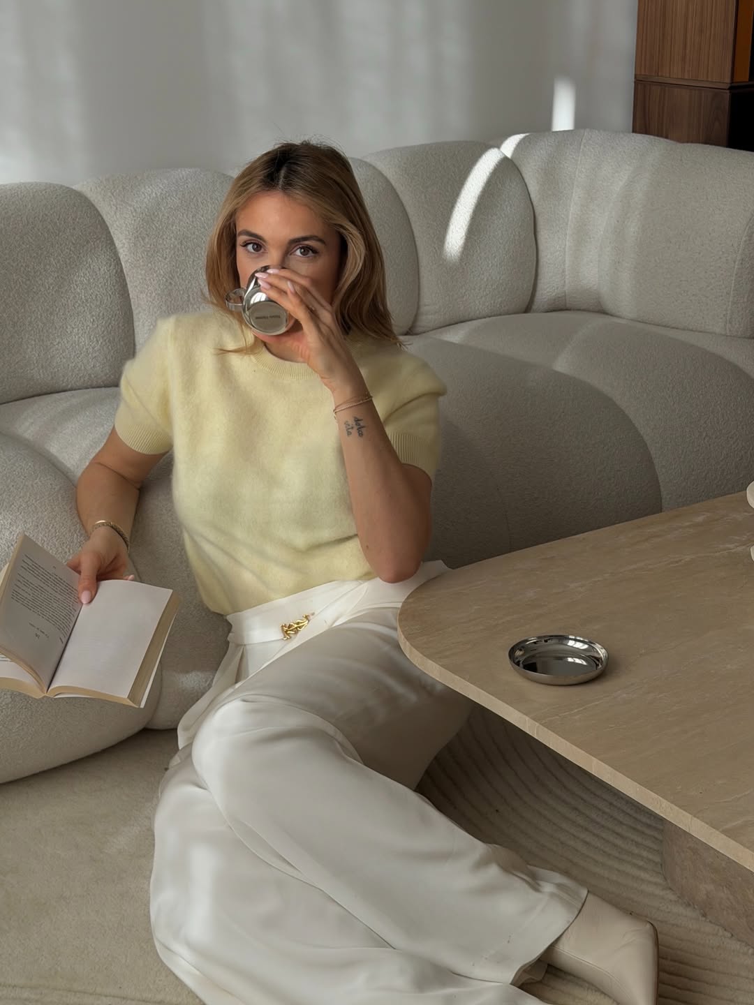Αν θέλετε κάτι πιο statement αλλά κομψό, επενδύστε σε ένα total butter yellow σύνολο. Ένα co-ord set ή ένα midi φόρεμα στην ίδια απόχρωση δημιουργεί ένα σύγχρονο, refined αποτέλεσμα.