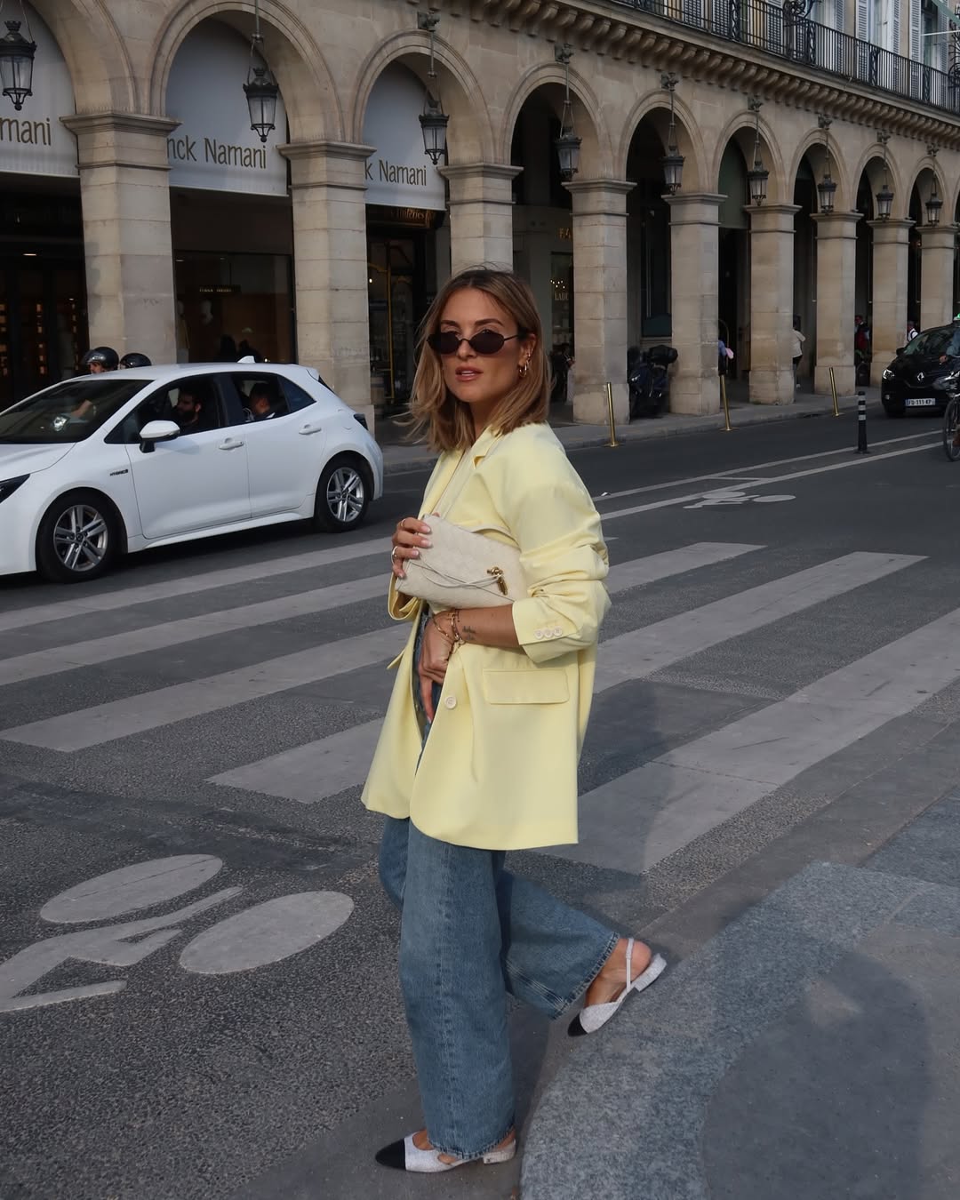 Επιλέξτε αξεσουάρ σε ουδέτερους τόνους όπως μπεζ, καφέ ή λευκό για ισορροπία. Αν θέλετε λίγη λάμψη, προτιμήστε χρυσά κοσμήματα ή soft metallics. Εναλλακτικά, ξεκινήστε διακριτικά με μια butter yellow τσάντα ή παπούτσια για να εντάξετε το trend σταδιακά.