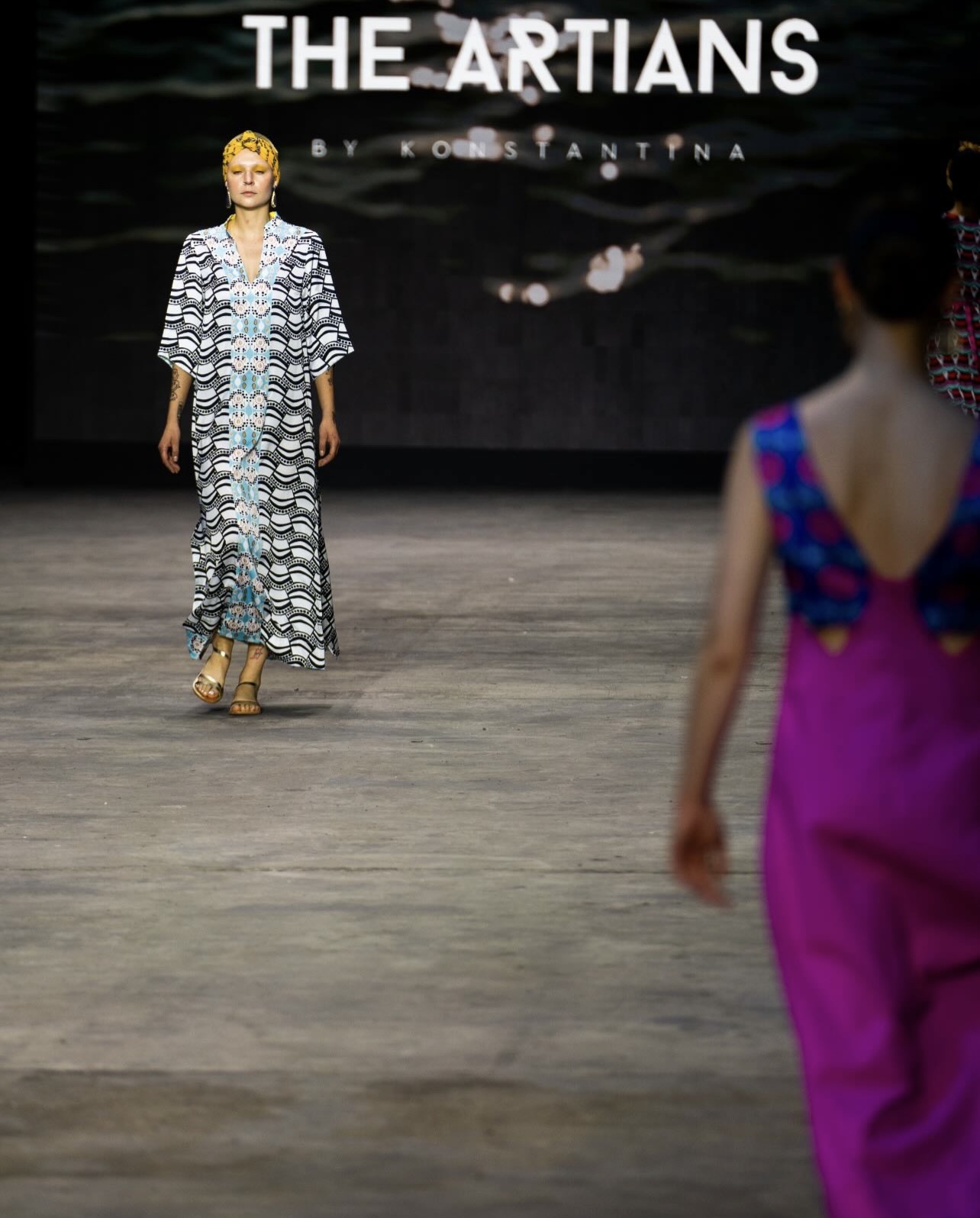 Το πρώτο ντεφιλέ από το brand The Artians by Konstantina με καλοκαιρινή κολεξιόν. Χαρούμενα εμπριμέ, χρώματα, περισσότερα χρώματα, υφάσματα ψυχεδελικά από προηγούμενες δεκαετίες σε ένα μοντέρνο περιτύλιγμα, σε καφτάνια, πουκαμίσες, παντελόνες, με μοτίβα εμμονικά και εκκωφαντικά.