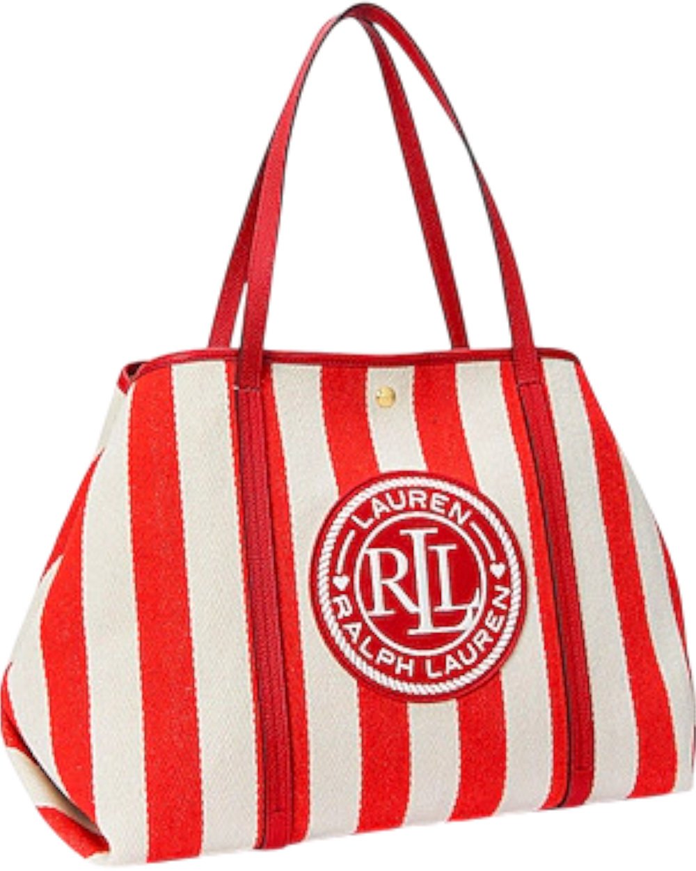 Τσάντα πάνινη ριγέ, €259, Lauren Ralph Lauren, YOOX.COM