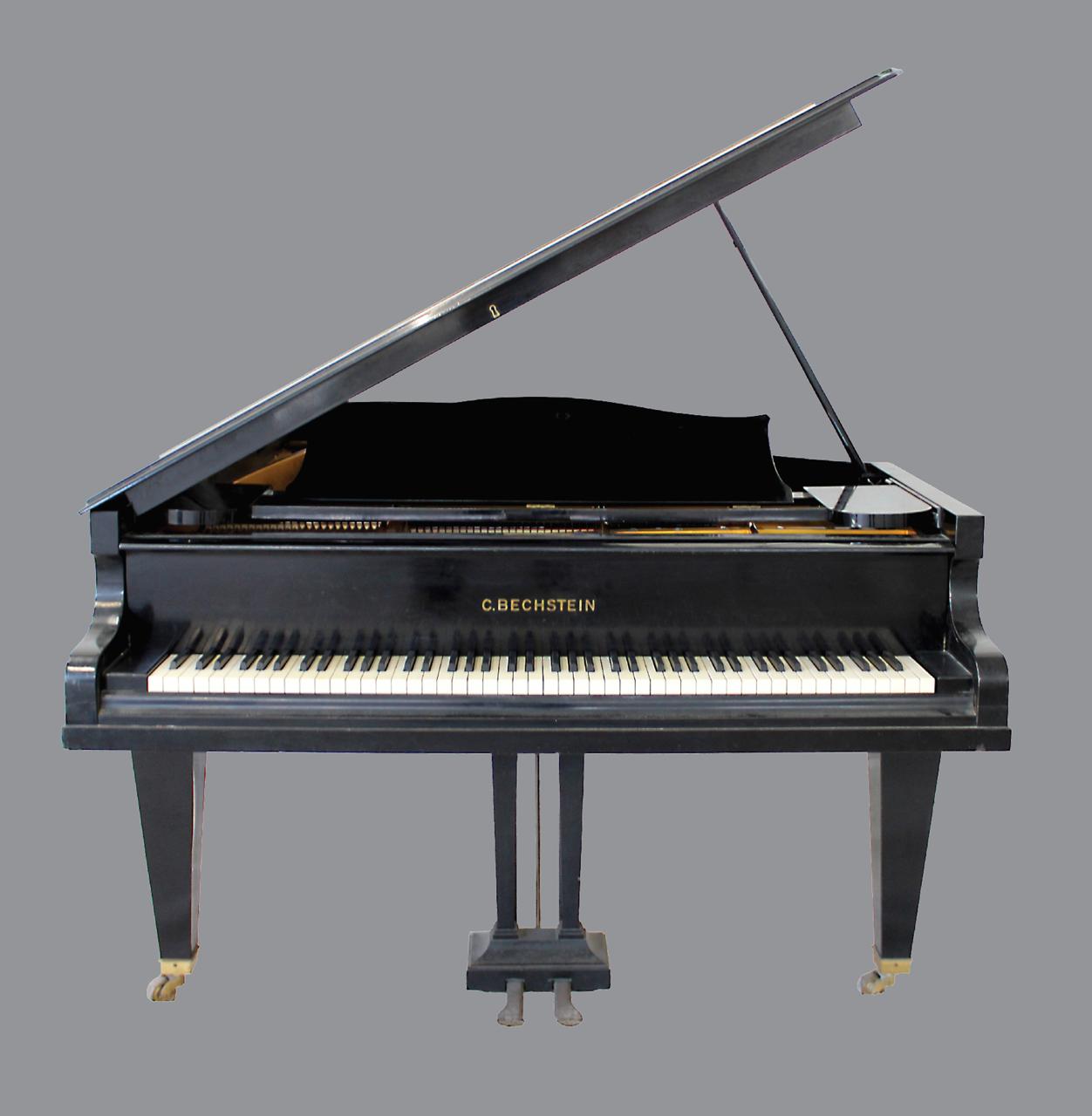 Μαύρο ξύλινο πιάνο με ουρά. Φέρει την επωνυμία του κατασκευαστή C. Bechstein