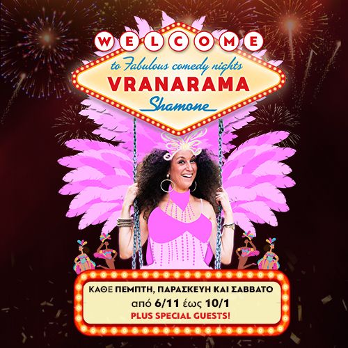 Η Κατερίνα Βρανά επιστρέφει πιο λαμπερή, πιο γκλάμουρους και πιο φάμπιουλους από ποτέ! Από τις 6 Νοεμβρίου, η γυναίκα που έβαλε τη λέξη «glitter» στο stand-up comedy, και στο outfit της, και στο πρόγραμμα της, και γενικά παντού, καταλαμβάνει το Shamone Club στο Γκάζι για να παρουσιάσει τις μοναδικές Vranarama comedy nights.