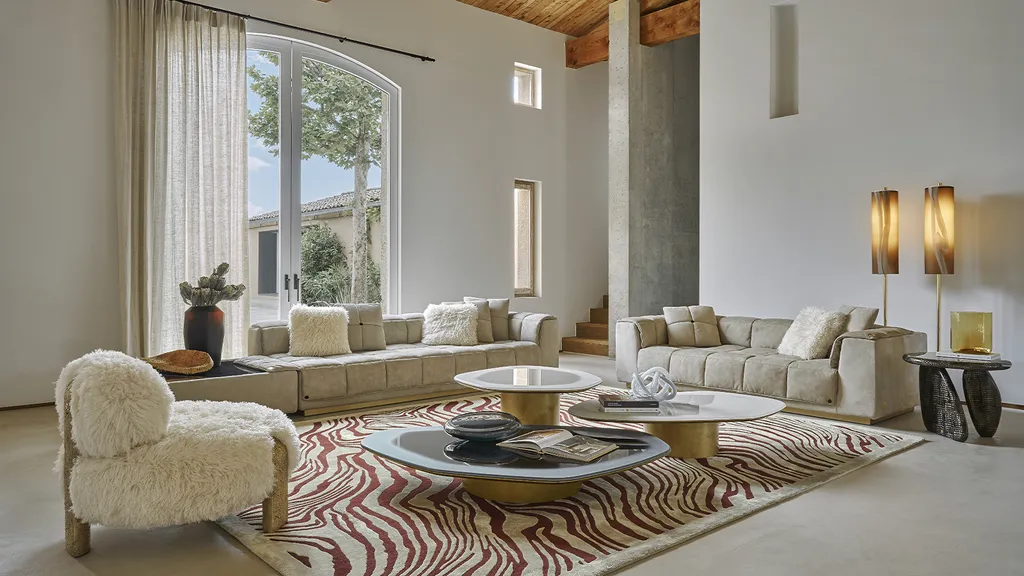 Απευθύνεται σε εσάς που εκτιμάτε τις λεπτομέρειες και απολαμβάνετε τα ωραιότερα πράγματα της ζωής. Από τους καμπυλωτούς καναπέδες και τις εντυπωσιακές πολυθρόνες μέχρι τη δυναμική παρουσία υλικών όπως ο χρυσός, η πέτρα και το ξύλο, κάθε στοιχείο αποπνέει πολυτέλεια και τόλμη. Οι ακατέργαστες υφές συναντούν τις γυαλιστερές επιφάνειες, ενώ οι θερμοί τόνοι κυριαρχούν, δημιουργώντας μια αύρα φυσικής αρμονίας και αισθησιασμού.