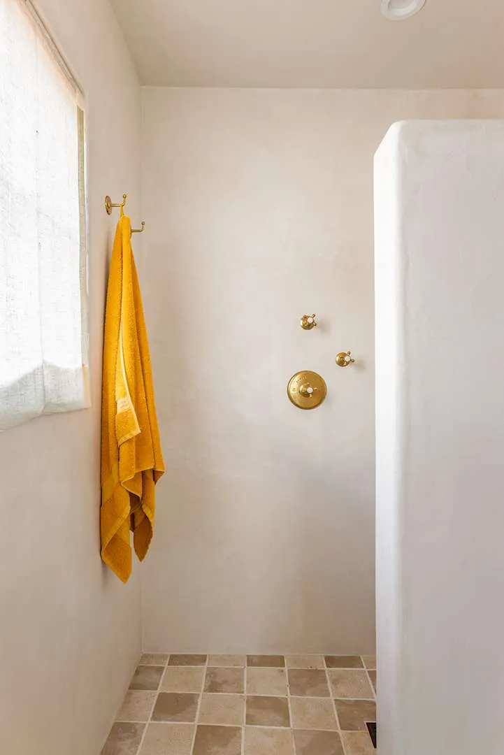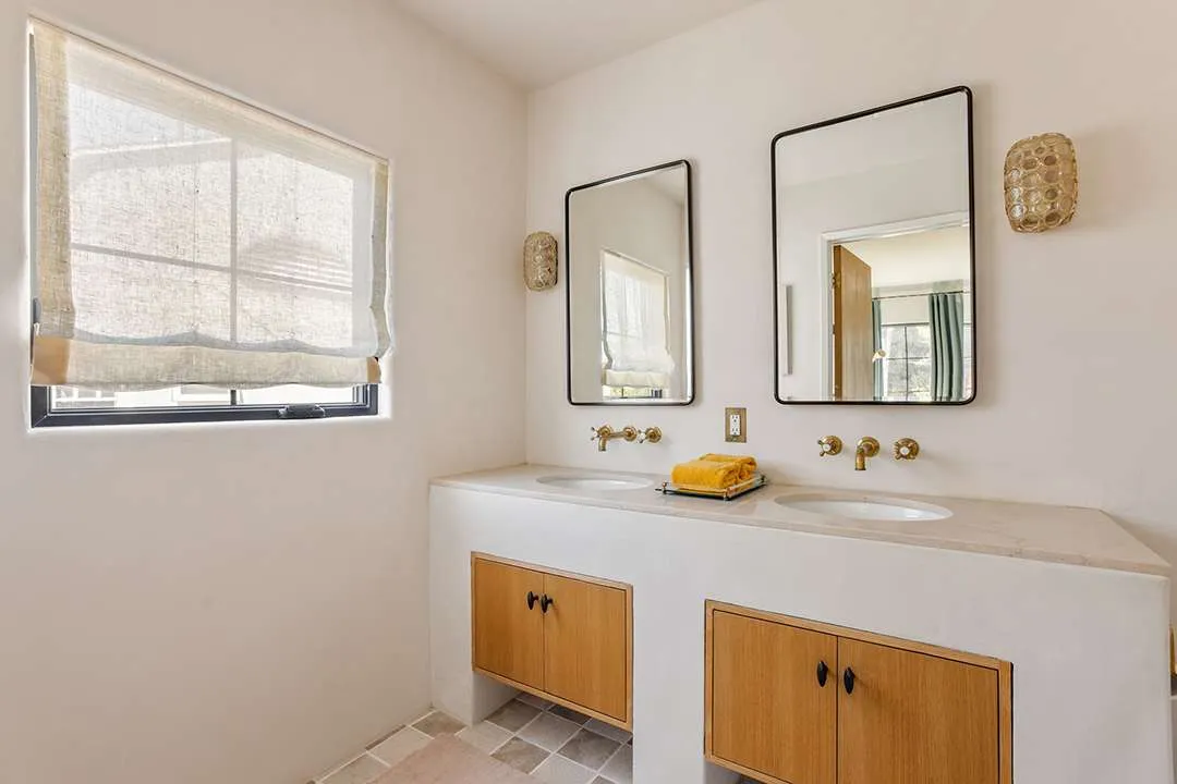 Η φιλοσοφία του Nobody Wants This δίνει έμφαση στη φυσικότητα. Επιλέξτε φυσικά υλικά, όπως λινό, γιούτα ή ξύλο με εμφανή “νερά”. Ένα ύφασμα από γιούτα σε καπέλο φωτιστικού ή ένας τοίχος με ένα υφαντό προσθέτουν υφή χωρίς να βαραίνουν το αποτέλεσμα. Στο δάπεδο, τα παραδοσιακά πλακάκια Saltillo, με τις θερμές, πορτοκαλοκόκκινες ισπανικές πλάκες, προσθέτουν μια αυθεντική, «χειροποίητη» αίσθηση που θυμίζει hacienda ή παραθαλάσσιο σπίτι της Καλιφόρνιας.