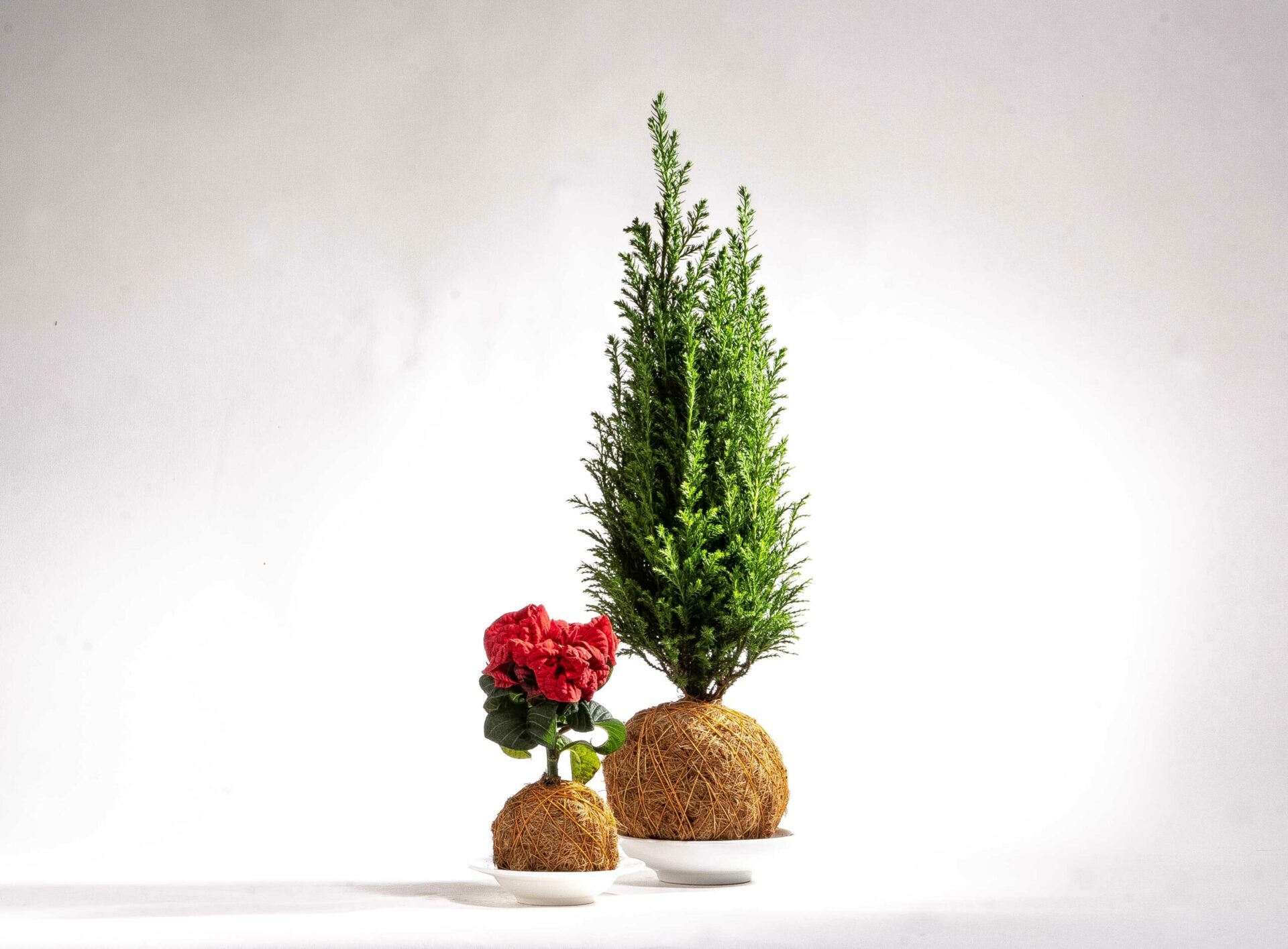 Τα kokedama προέρχονται από την ιαπωνική τέχνη όπου οι ρίζες ενός φυτού τυλίγονται σε μια μπάλα από βρύο, καταργώντας την ανάγκη για γλάστρα. Η γήινη υφή του βρύου δίνει μια ιδιαίτερη αίσθηση στο δέντρο σας, προσθέτοντας υφή και σχεδόν αρχιτεκτονικό ενδιαφέρον στην κλασική εορταστική εμφάνιση.
