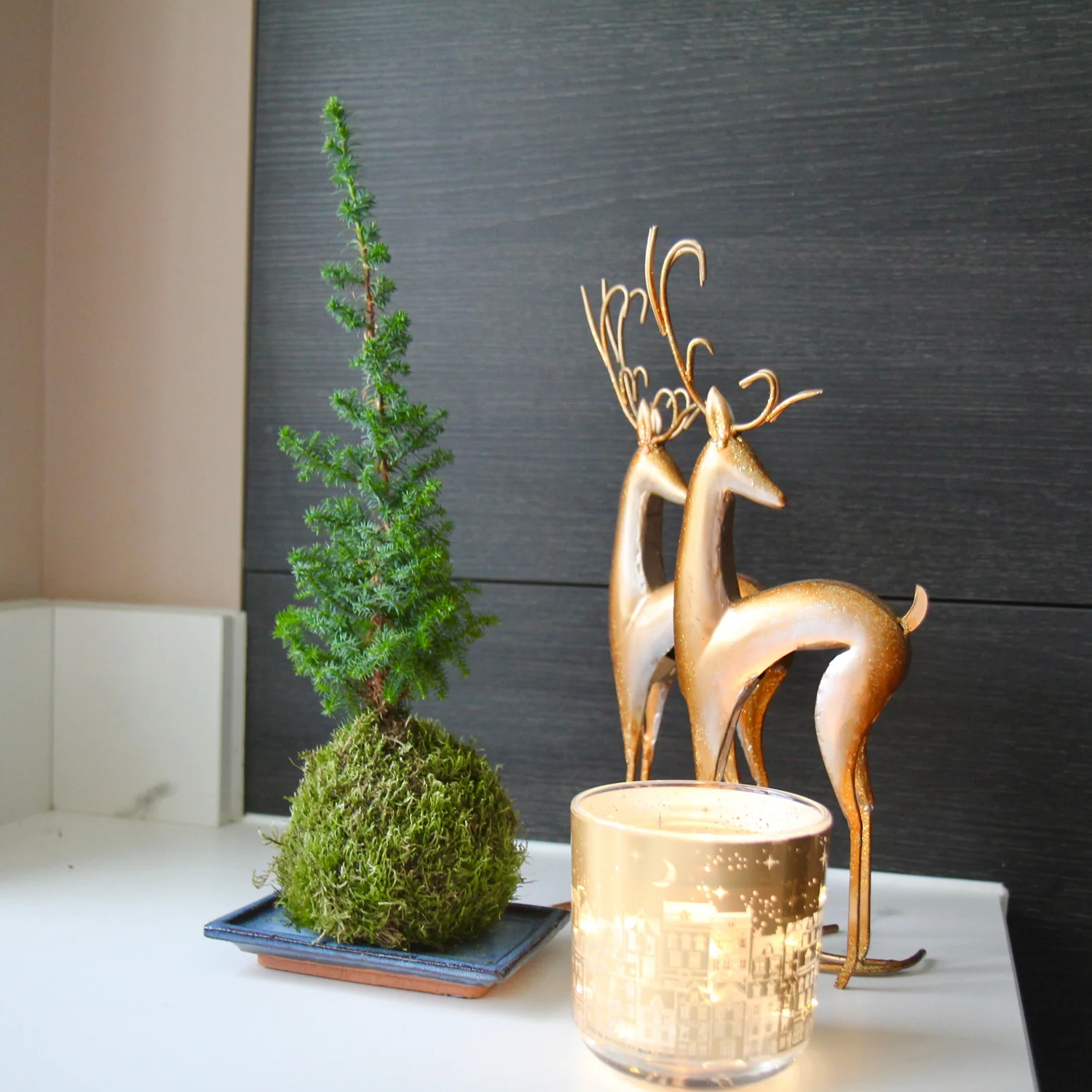 - Μινιμαλιστική κομψότητα: Το βρύο αντικαθιστά τη γλάστρα και δίνει στο δέντρο μια καθαρή, μοντέρνα εμφάνιση.