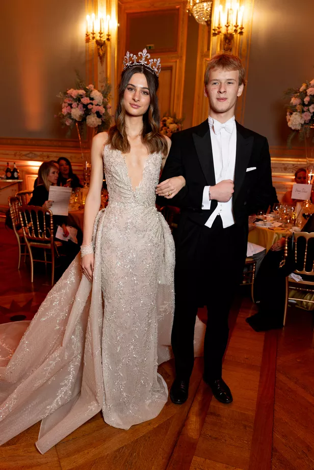 Αντίθετα, η “ομότιτλή” της Gabrielle Janssens de Balkany, η οποία άνοιξε τον χορό πρωταγωνίστησε φορώντας ένα αιθέριο λευκό φόρεμα με στρας από την Luisa Beccaria. Το διακριτικά στρας φόρεμα ήταν διακοσμημένο με ένα λαμπερό διάδημα. Όχι τόσο εμφατικό, όπως αυτό της Eulalia, παρότι η Gabrielle από τη μεριά της μητέρας της είναι τρισέγγονη των τελευταίων βασιλιάδων της Ιταλίας.