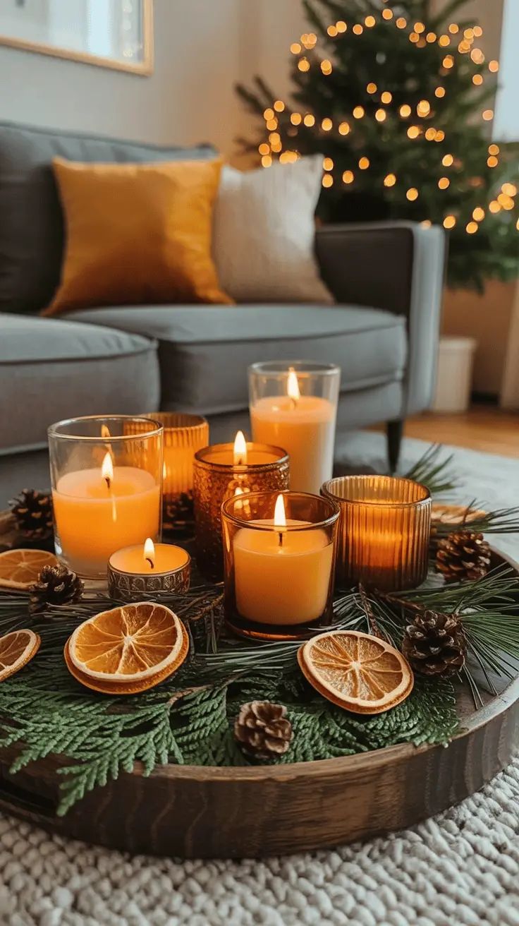 Τα κεριά είναι μια εύκολη μέθοδος για να απελευθερώνετε σταδιακά αρώματα. Μπορείτε να τα τοποθετήσετε σε διάφορα δωμάτια για να δημιουργήσετε ομοιόμορφη γιορτινή ατμόσφαιρα σε όλο το σπίτι.