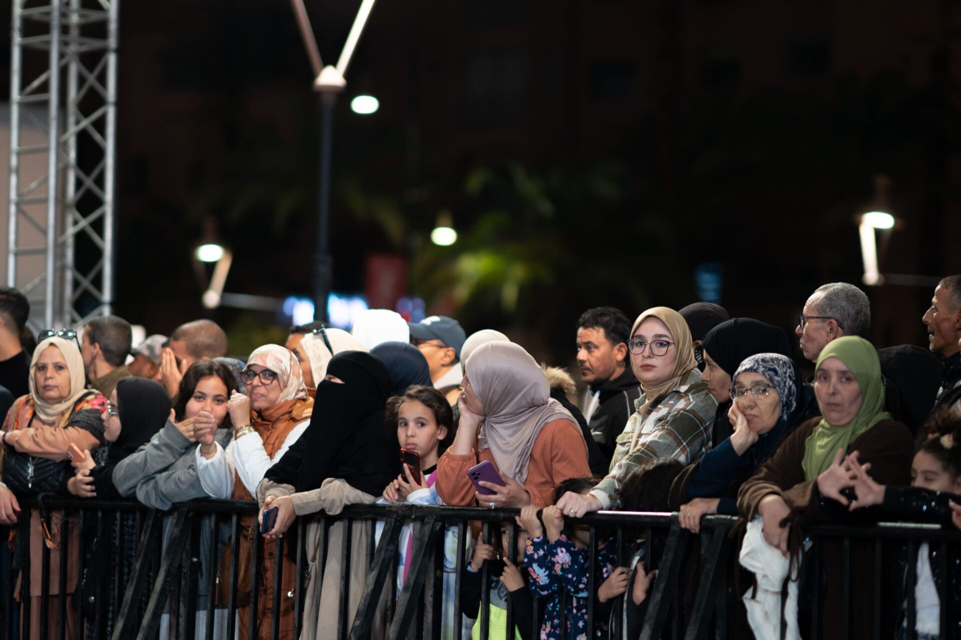 Μαροκινοί σινεφίλ περιμένουν να δουν την παρέλαση στο κόκκινο χαλί.