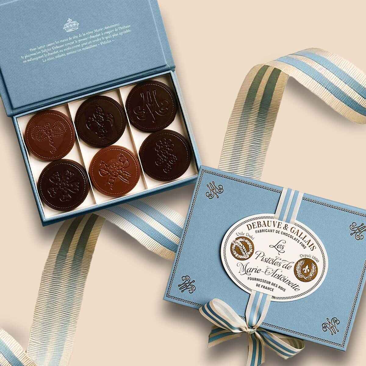 Γεννιούνται τότε οι “πιστόλες” της Μαρίας Αντουανέτας, μία ονομασία που η ατυχής βασίλισσα, γοητευμένη, έδωσε σε αυτές τις μικρές σοκολατένιες μπουκιές λόγω του σχήματος μεταλλικού νομίσματος της εποχής.