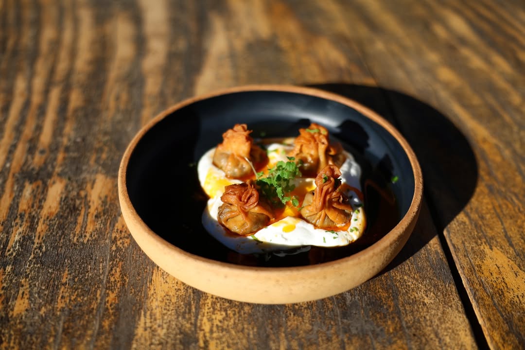 Στον Πλάτανο θα γευτείτε τραγανό μαντί γεμισμένο με άγρια μανιτάρια, πάνω σε στραγγιστό γιαούρτι και αρωματισμένο με brown butter.