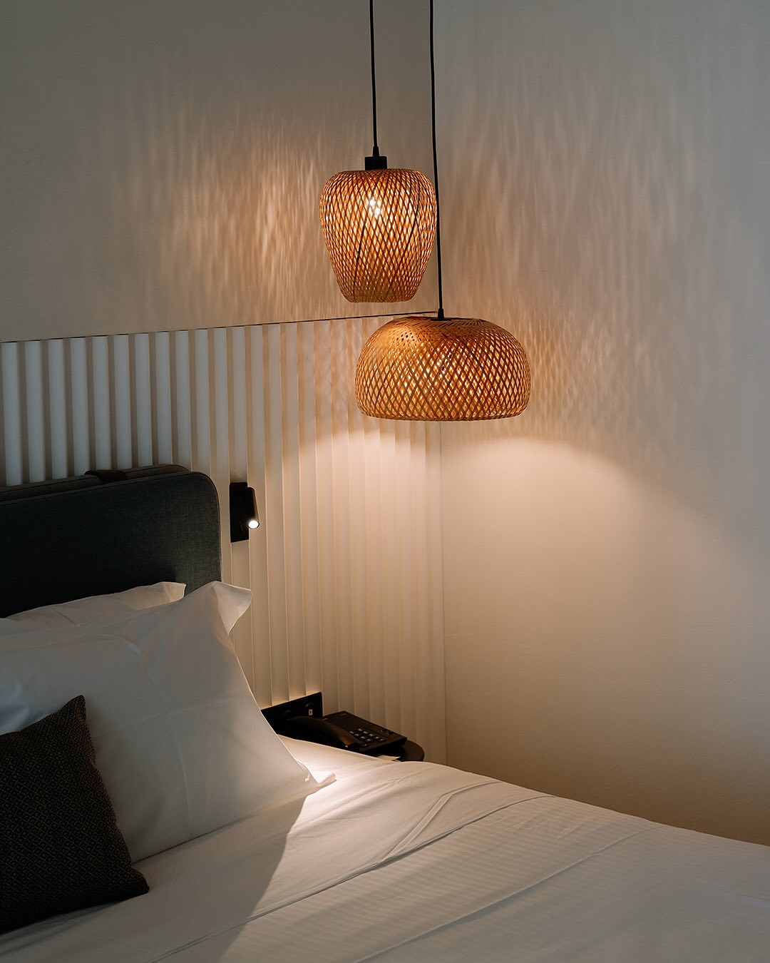 Οι λάμπες τοίχου δίπλα στο κρεβάτι προσφέρουν λειτουργικότητα και ταυτόχρονα αναβαθμίζουν αισθητικά τον χώρο, θυμίζοντας ξενοδοχειακή σουίτα όπου κάθε λεπτομέρεια έχει μελετηθεί.
