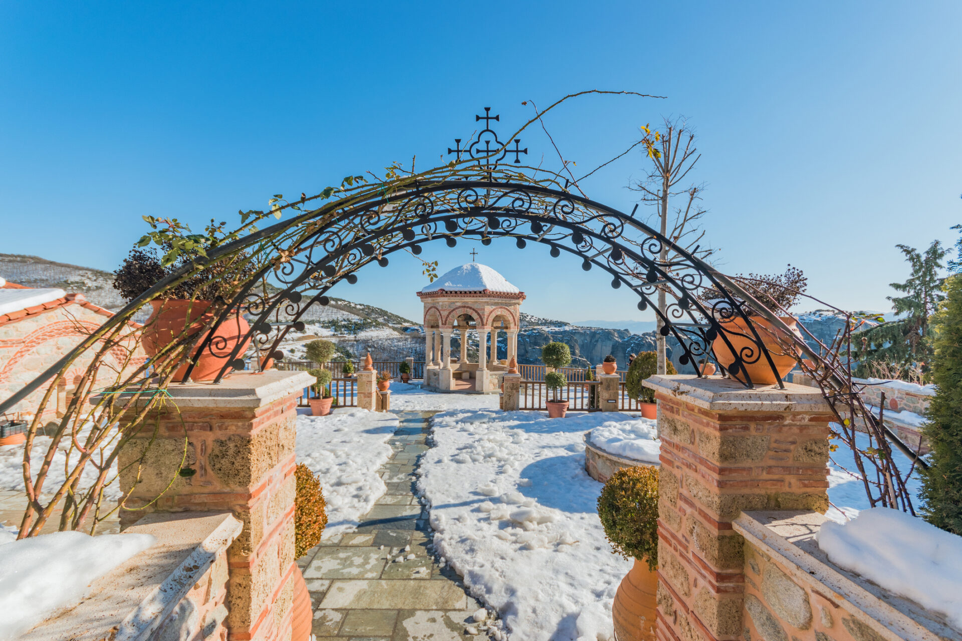 The Monastery of Varlaam is the second largest monastery in the Meteora in winter time, Greece.