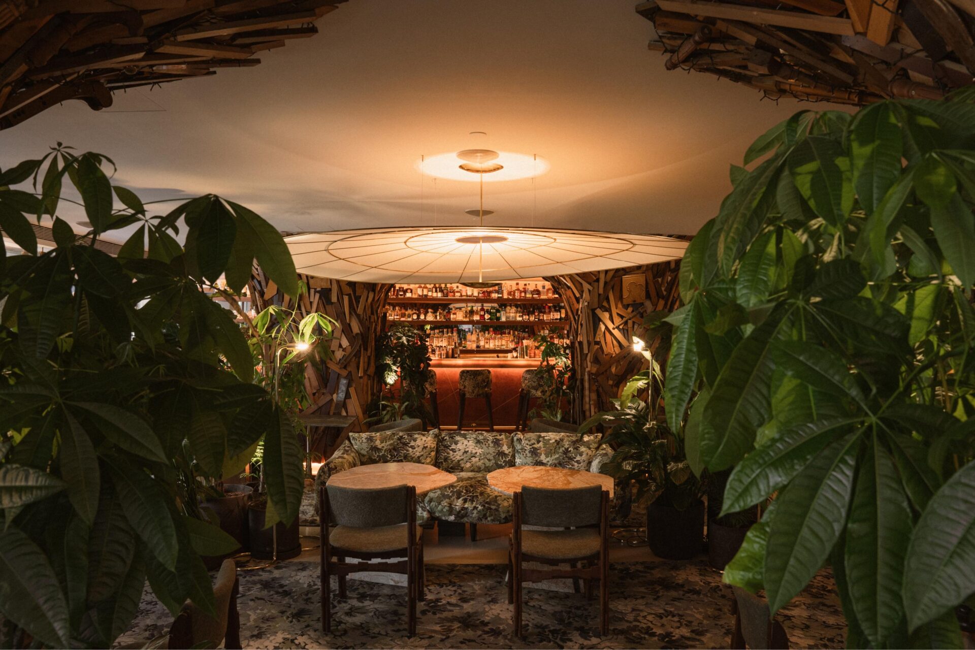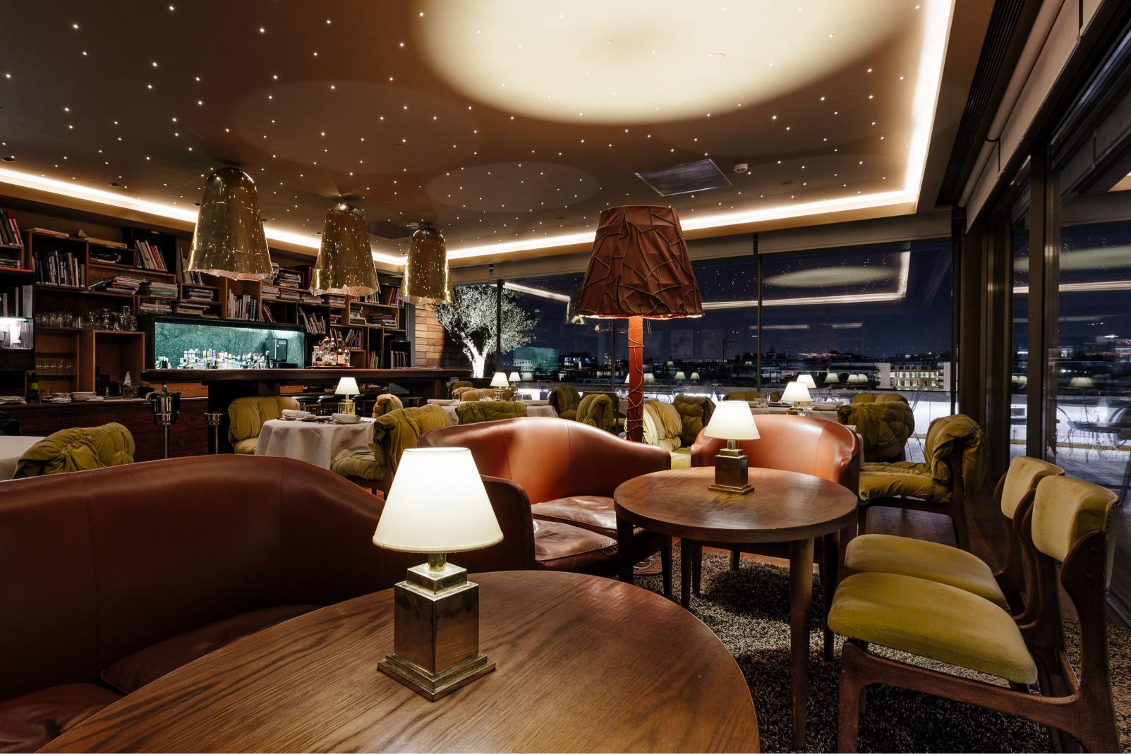 Το δείπνο σερβίρεται σε ένα σκηνικό σύγχρονης τέχνης και bespoke design αντικειμένων, με την πόλη να απλώνεται φωτεινή πίσω από τις μεγάλες τζαμαρίες, ένα περιβάλλον αστικό, κομψό και αθηναϊκό.