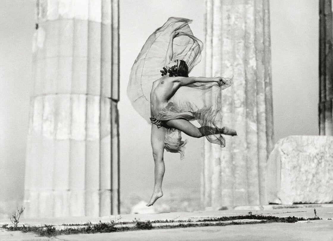 Ήθελε μέσω της Paeva να δώσει ζωή στα άψυχα μάρμαρα, είχε ζητήσει άδεια από τον έφορο της Ακρόπολης Αλέξανδρο Φιλαδελφέα. “Είχα πάρει μαζί μου πολλά μέτρα άκοπες μουσελίνες, αρχαϊκά πέπλα για την όμορφη μπαλαρίνα. Από τη διεύθυνση της Ακρόπολης μου είχαν πει ότι η φωτογράφιση έπρεπε να γίνει μετά το επισκεπτήριο. Έτσι για να μην είμαστε δυο κοπέλες μόνες στην ερημιά παρακάλεσα τον πατέρα μου να μας συνοδεύσει. Ήταν όμως εκεί και ο ίδιος ο Φιλαδελφέας. Μας έδειξαν το σπιτάκι του φύλακα και μας είπαν ότι η καλλιτέχνις μπορούσε να αλλάξει εκεί και να βάλει τα πέπλα που είχα φέρει μαζί μου. Η πόρτα ήταν μισάνοιχτη, και καθώς ο ήλιος έγερνε και γέμιζε με φως τον μικρό χώρο, είδα για πρώτη φορά την ξένη χορεύτρια ολόγυμνη. Μου φάνηκε πως ενσάρκωνε το πνεύμα των αρχαίων μαρμάρων! Την ρώτησα αν θα μπορούσε να ποζάρει τελείως γυμνή και δέχτηκε. Έτρεξα και ρώτησα τον Φιλαδελφέα. Η απάντησή του ήταν καταφατική: ‘Φτάνει οι φωτογραφίες να μην είναι για δημοσίευση'”.