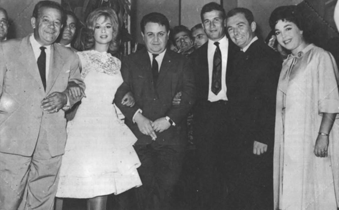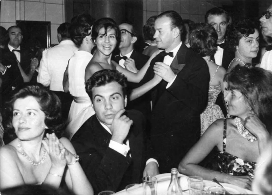 Στιγμιότυπο από δεξίωση στην 1η Εβδομάδα Ελληνικού Κινηματογράφου το 1960. Διακρίνονται ο Τάκης Κανελλόπουλος (στο κέντρο) και ο Μίμης Πλέσσας να χορεύει. Photo credit: @filmfestivalgr/IG