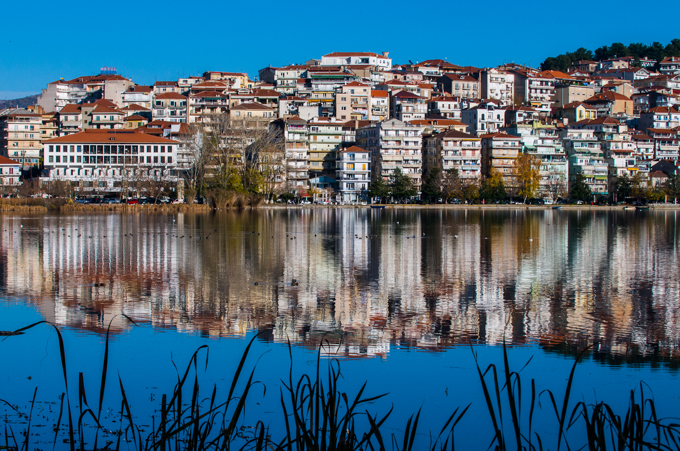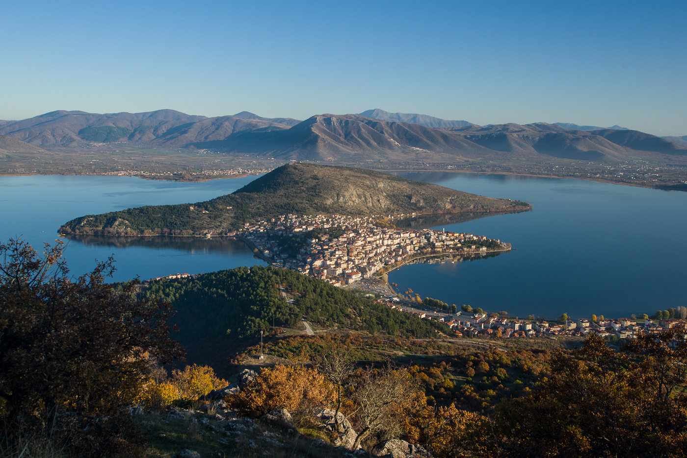 Η Καστοριά είναι κτισμένη και στις δύο πλευρές μιας χερσονήσου στη λίμνη Ορεστιάδα.