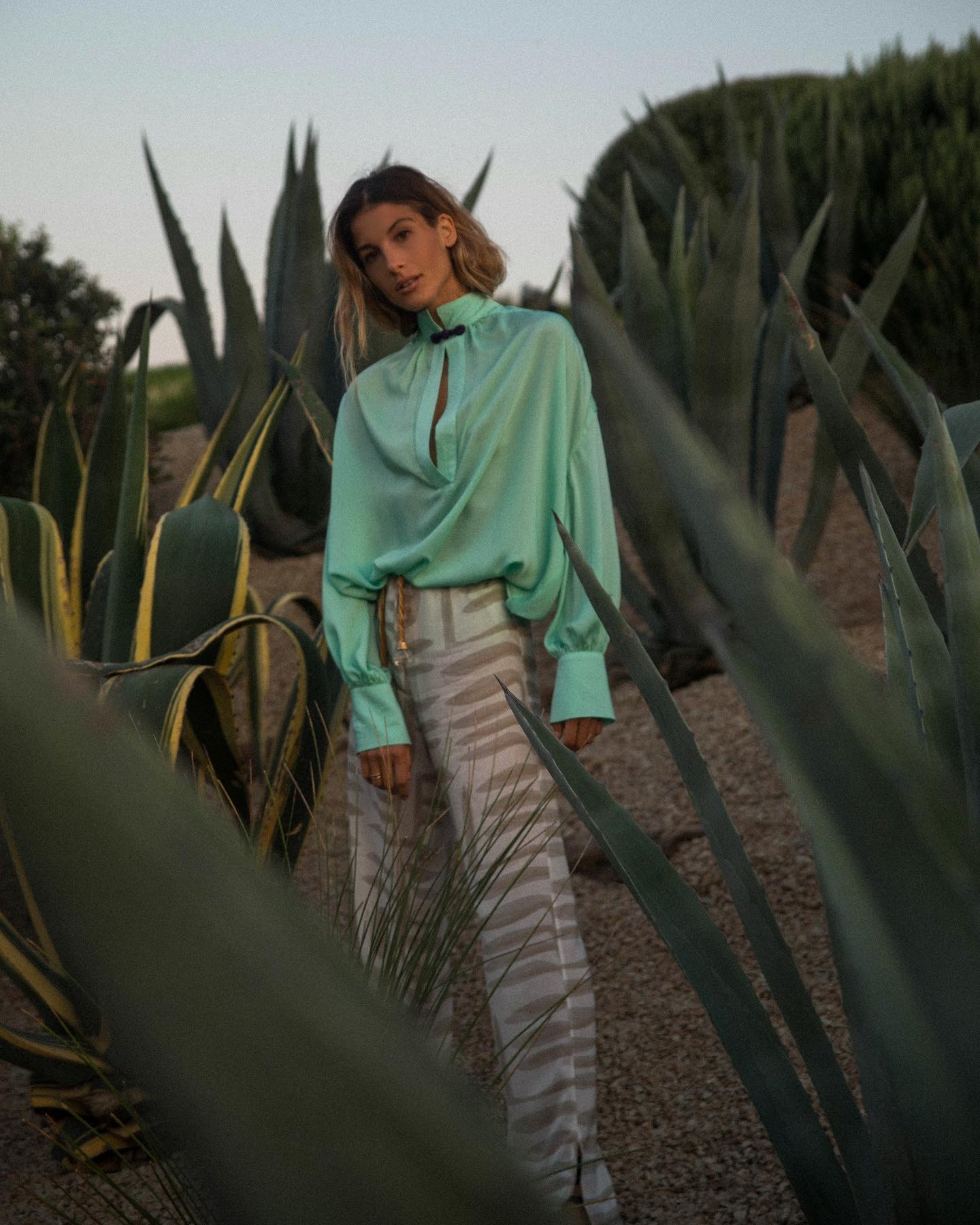 Μάλιστα μου αποκάλυψε ότι επιλέγει να σχεδιάζει μόνη της τα περισσότερα από τα ρούχα που φοράει. «Ξεκινώ από την επιλογή των υφασμάτων και έπειτα τα μετατρέπω σε σχέδια που με εκφράζουν. Αυτό βέβαια δεν σημαίνει ότι δεν αγοράζω έτοιμα κομμάτια. Όμως εκείνα που νιώθω ότι με αντιπροσωπεύουν περισσότερο είναι σίγουρα τα δικά μου σχέδια».