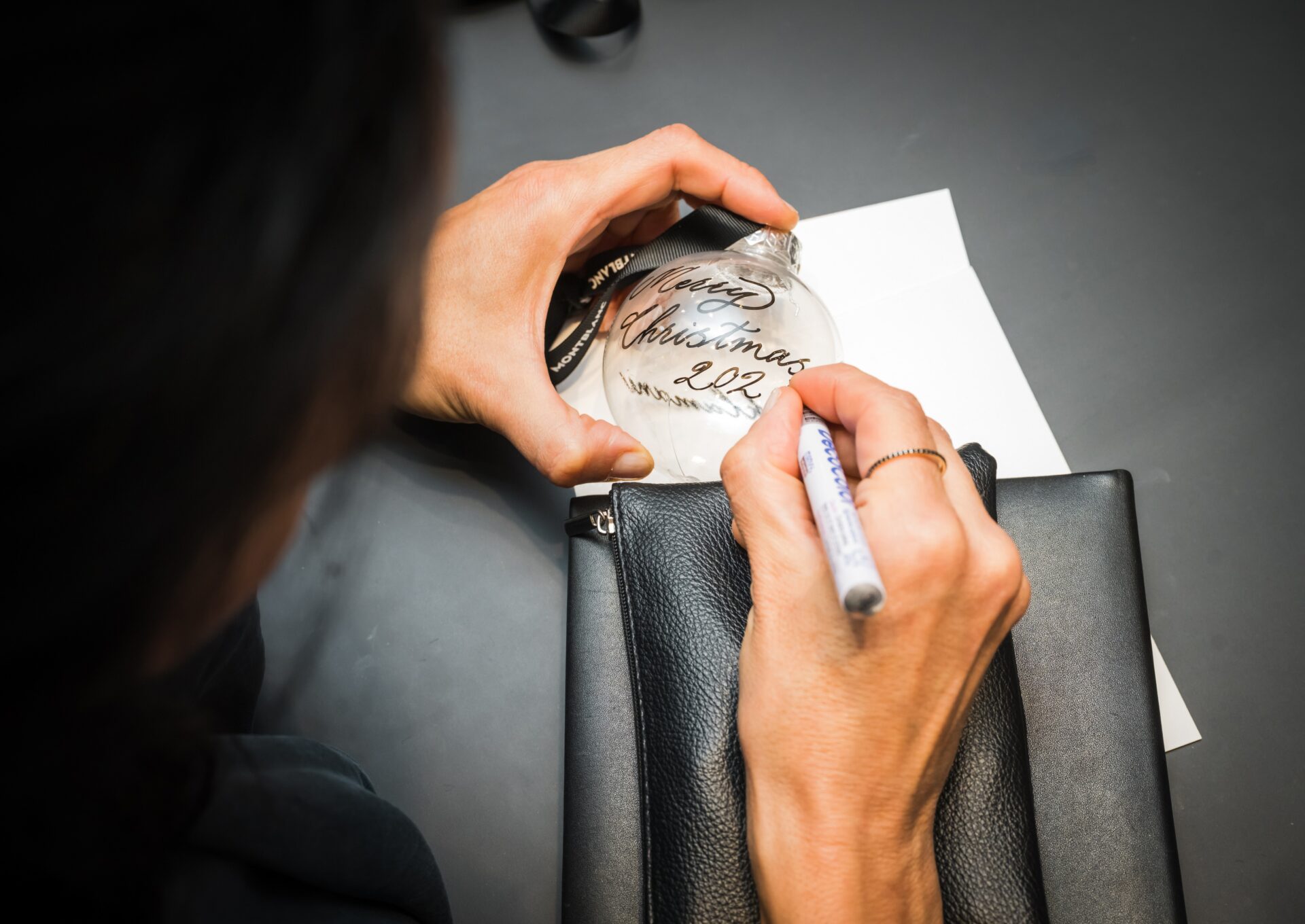 Το highlight της βραδιάς ήταν η συμμετοχή των παρευρισκομένων στη δημιουργία του χριστουγεννιάτικου στολισμού της μπουτίκ. Οι καλεσμένοι έγραφαν τις δικές τους ευχές για τη νέα χρονιά σε ειδικές χάρτινες μπάλες Montblanc και στη συνέχεια στόλισαν οι ίδιοι το χριστουγεννιάτικο δέντρο του καταστήματος, προσθέτοντας την προσωπική τους πινελιά και γεμίζοντας τον χώρο με μηνύματα αισιοδοξίας και χαράς.