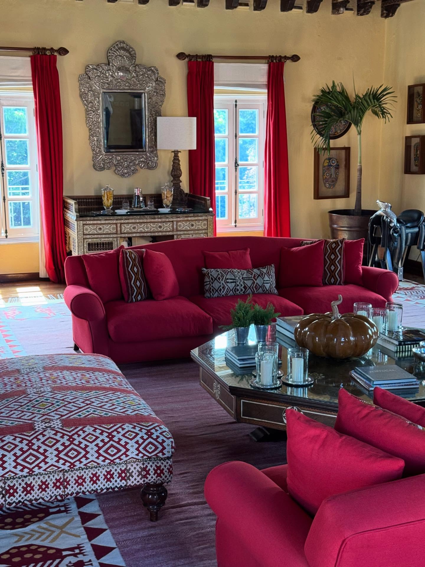 Φωλιασμένη στους καταπράσινους πρόποδες του ηφαιστείου Colima, η Hacienda de San Antonio αποτελεί έναν καθηλωτικό θύλακα ζωντανής ιστορίας, διατηρώντας το μεγαλείο μιας παραδοσιακής μεξικάνικης έπαυλης. Καταπράσινες εσωτερικές αυλές και ατελείωτοι σκιεροί διάδρομοι οδηγούν στο Rancho Jabali, το ιδιόκτητο ράντσο της Hacienda έκτασης 20.000 στρεμμάτων, προσφέροντας αμέτρητες δυνατότητες για χαλάρωση και περιπέτεια. Σε άλλα στιγμιότυπα, το ζευγάρι φαίνεται να κάνει πικνικ μαζί με φίλους σε ένα καταπράσινο τοπίο, στο οποίο έφτασαν με μικρό αεροσκάφος.