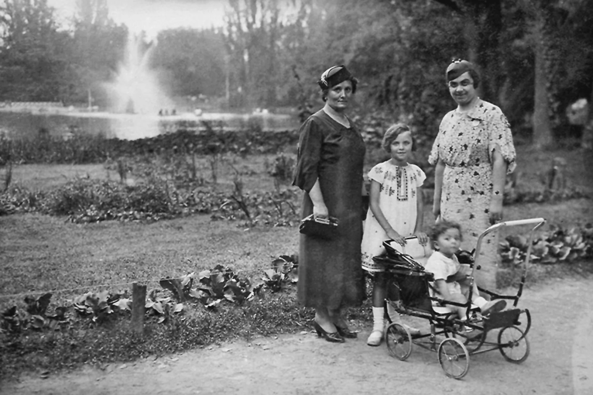 Ελένη Γλύκατζη Αρβελέρ με τη μητέρα της, τη θεία της Ευτέρπη Ψαλτίδου και τον μικρό της ξάδελφο, στη Ρουμανία © Ελένη Γλύκατζη–Αρβελέρ, Μια ζωή χωρίς άλλοθι, όπως την αφηγήθηκα στον Γιάννη Ν. Μπασκόζο, Εκδόσεις: Μεταίχμιο