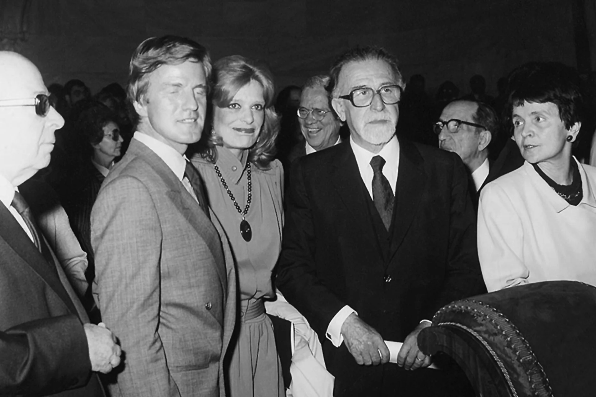 Από αριστερά: Bernard Kouchner, Μελίνα Μερκούρη, Μανόλης Ανδρόνικος, Ελένη Γλύκατζη Αρβελέρ © Ελένη Γλύκατζη-Αρβελέρ, «600 μολύβια και 10 ποιήματα», Eκδόσεις: Γκοβόστη