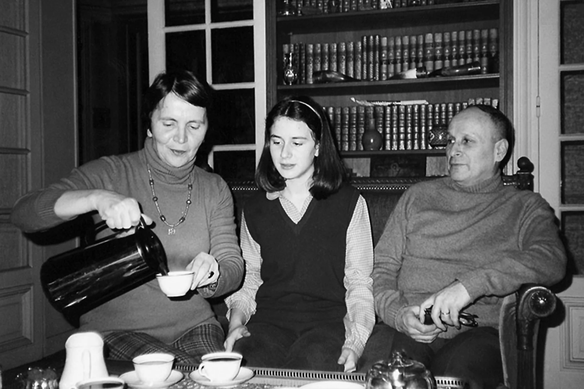 Η Ελένη Γλύκατζη Αρβελέρ με τον σύζυγό της Ζακ Αρβελέρ και την κόρη τους Μαρί Ελέν © Ελένη Γλύκατζη-Αρβελέρ, «600 μολύβια και 10 ποιήματα», Eκδόσεις: Γκοβόστη
