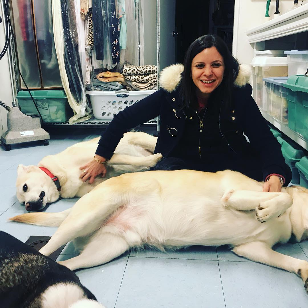 Με τα αγαπημένα της σκυλιά.