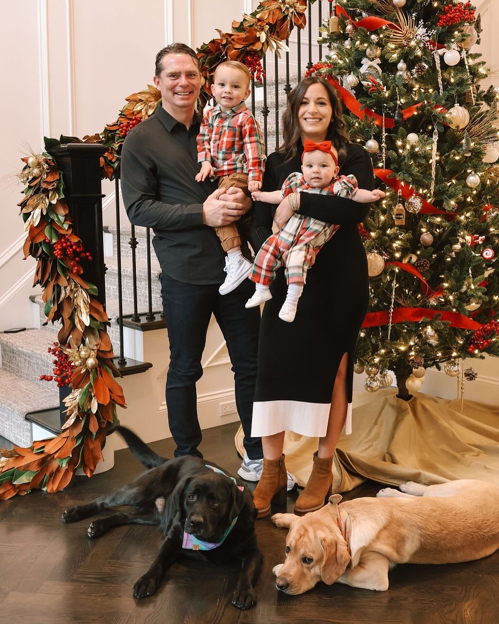 Η πλήρης οικογένεια συγκεντρωμένη μπροστά στο χριστουγεννιάτικο δέντρο.